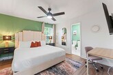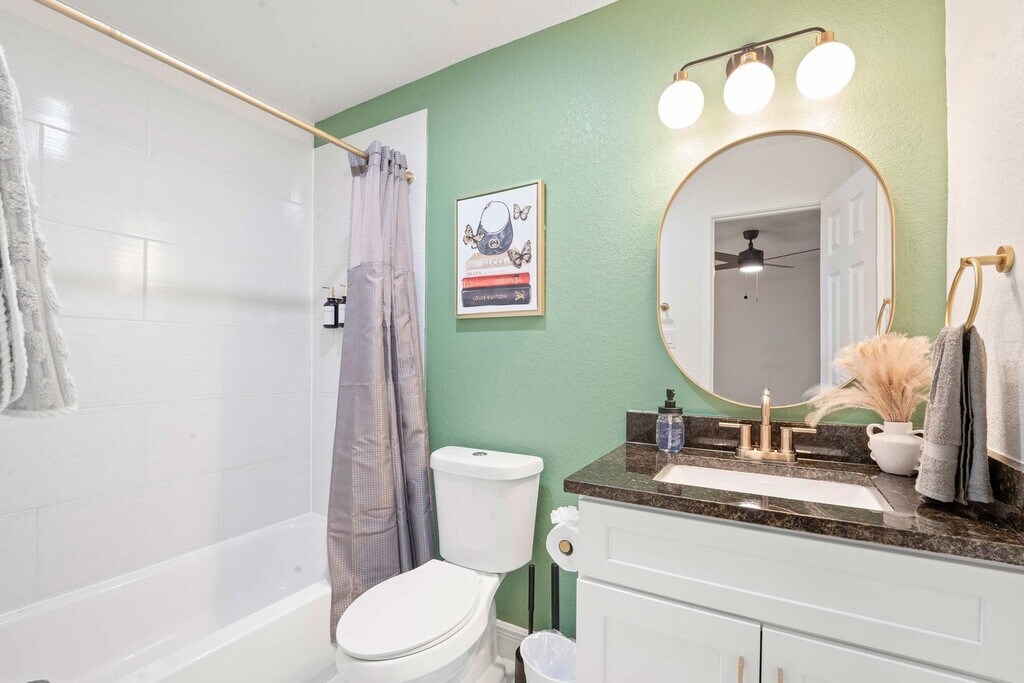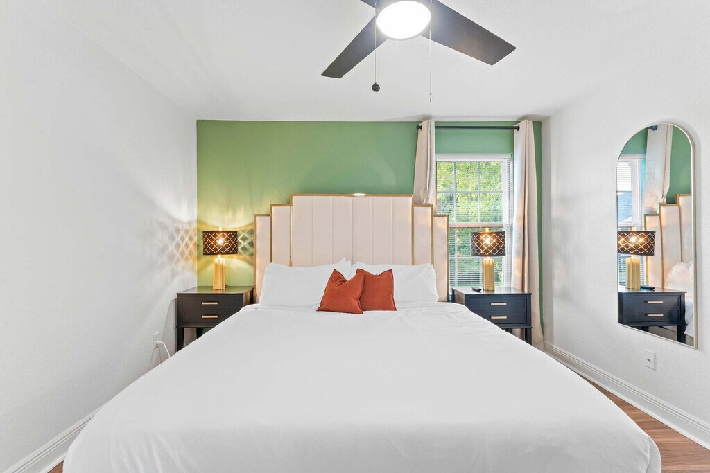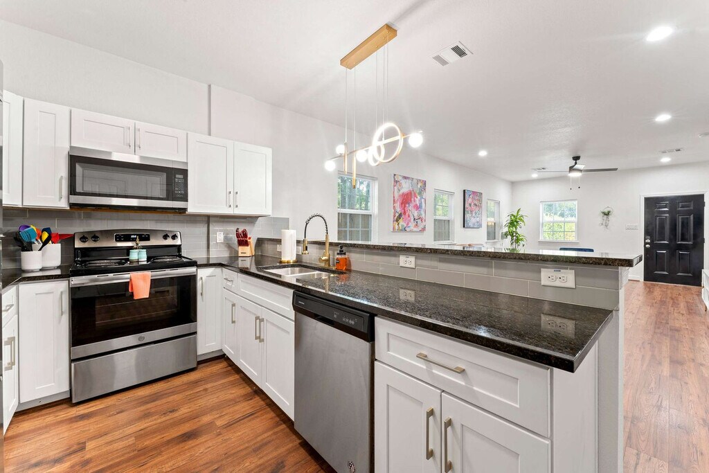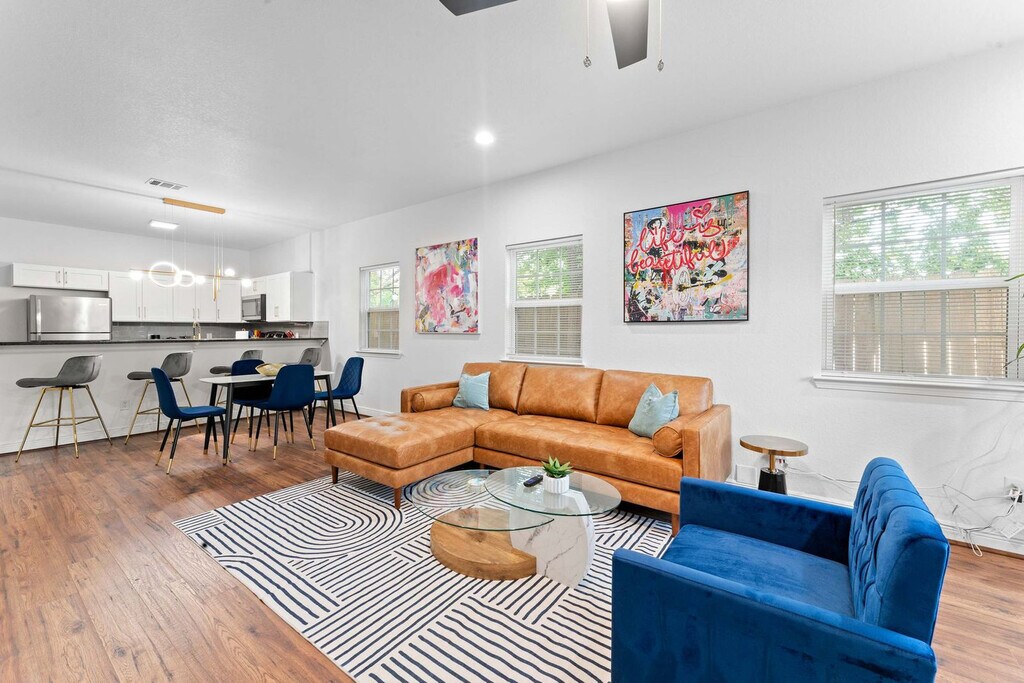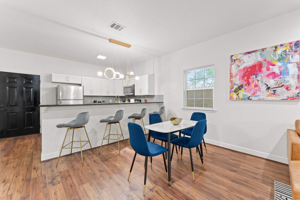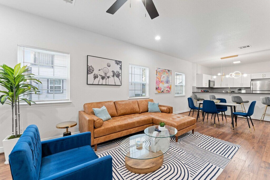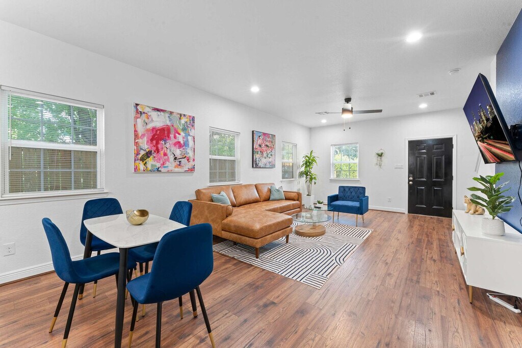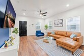 The advertised rate of $4,063/month is the lowest available price, based on a 30 day(s) stay with a move-in date of March 24, 2026. Rates vary depending on the duration of stay, season, and other parameters. For exact pricing and additional pricing components, please visit our website and enter your desired move-in and move-out dates. The rate is applicable when billed upfront; it can be higher if billed in multiple payments. Feel at home in this 1,292 sqft 2-bedroom condo next to the World Cup venue and close to everything Houston has to offer. This beautifully furnished home features a fully stocked kitchen, spacious bedrooms, a fenced yard, and a washer and dryer. The kitchen is fully equipped with pots and pans, bakeware, dinnerware, silverware, cookware, a blender, and a toaster. Enjoy complimentary coffee and tea with a Keurig machine and pour-over coffee. For entertainment, there is a 65” smart TV in the living room with complementary access to live cable (YouTubeTV), Disney+, Amazon Prime Video, HBO Max, and Hulu. Each bedroom has a 43" smart TV with non-complementary access to all streaming apps. The dining table seats four, and the extended bartop also seats four. This condo is pet-friendly with a fee of $25 per pet per night. Free gated on-site surface lot parking is available for two cars, and non-gated street-side parking is available for additional cars. Welcome to Houston’s vibrant NRG/Medical Center district, where world-class healthcare, sports, culture, and nightlife all converge. This area is home to NRG Park and is just minutes away from the Museum District and Hermann Park. Midtown is easily accessible via METRORail. Many of Houston's best attractions are scattered around the city and are much more convenient when accessed by car. This condo is an easy commute to NRG for concerts and games, Medical Center South for work and loved ones, and Midtown/Montrose/EaDo for play. It is 11 minutes from NRG and the Medical Center, 13 minutes from Midtown and Hobby Airport. Quiet hours are between 10 pm and 8 am. Guests will be charged in full for any damages or violations of the house rules. Smoking, parties, and excessive noise are not allowed, and smoking violations are subject to a $1,000 fine, which includes the cost to clean, deodorize, and repair damages. Undisclosed pets will be charged at $200 per day. Includes designated work desks in each bedroom. Registration Number: STR-2025-000787 [SI]