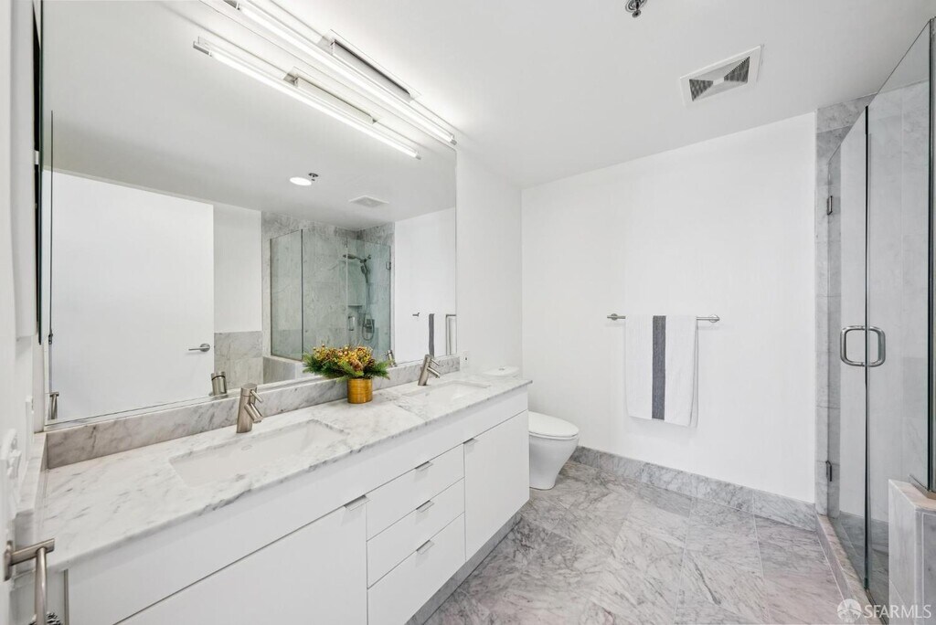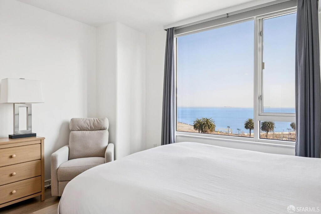 Recently remodeled, this corner residence captures sweeping water views and excellent southern exposure, flooding the home with natural light throughout the day. Step out onto the balcony each morning with coffee in hand and take in serene sunrise views over the water. The sleek, modern kitchen has been thoughtfully redesigned with a large island, stainless steel appliances, new quartz countertops and backsplash, and a built-in wine fridge, perfect for both everyday living and effortless entertaining. The primary suite offers uninterrupted water views, dual closets, and a luxurious en-suite bath featuring double vanities, a soaking tub, and a separate walk-in shower, creating a true spa-like retreat. A well-proportioned second bedroom enjoys sunny southern exposure and is conveniently located adjacent to the second full bathroom. Additional highlights include in-unit washer and dryer, generous storage throughout. For an additional fee there is dedicated parking space equipped with EV charging. Ideally situated along San Francisco's vibrant waterfront, just minutes from the Ferry Building, Oracle Park, and Chase Center. Enjoy easy access to award-winning restaurants, cafes, and cultural destinations, along with convenient proximity to Highways 80 and 280, plus MUNI and BART. MLS # 426115416