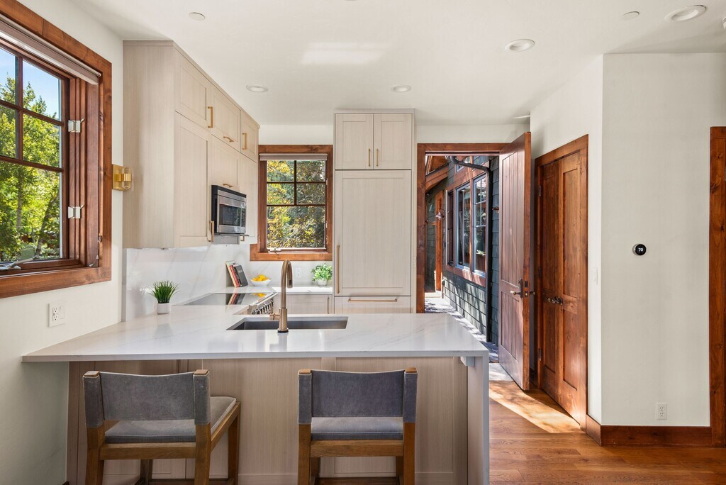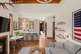This beautifully remodeled top-floor corner one-bedroom property is located in the coveted Christiana complex in Aspen's West End. Its open floor plan, three walls of windows, a cathedral beamed ceiling, inviting gas fireplace and hardwood floors make this a great option for your Aspen stay. The new modern kitchen includes quartz countertops, stainless steel appliances and lots of natural light. The bedroom has a king bed with luxury bedding and blackout shades for maximum comfort. The remodeled bathroom has plenty of room with double vanity sinks and a spacious steam shower. All new high-end Restoration Hardware furnishings and accessories make this a great luxury home. Views of Smuggler, Aspen and Red Mountains. There is a stackable washer/dryer in the condo and complex amenities include pool & hot tub, walk to downtown or take convenient cross-town shuttle. STR# 082676