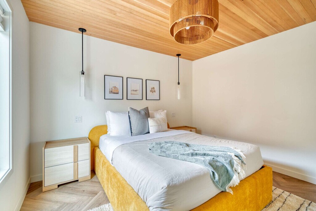Feel at home in this 3-bedroom townhome in Portland’s Alberta Arts District, featuring soaring ceilings, designer finishes, and two Juliet balconies. The main floor features soaring wood-beam ceilings and herringbone floors. The fully stocked chef’s kitchen includes modern appliances. The living area offers a comfy sectional, Smart TV, and access to a small outdoor patio. Upstairs, you'll find two sunlit bedrooms with oversized sliding doors opening to Juliet balconies. These rooms share a modern full bathroom with dual sinks and a tub/shower combo. The in-unit washer and dryer are located on this floor. If you’d like full access to all 4 bedrooms and 2 bathrooms, inquire about booking the full home. Traveling with more guests? Book the separate downstairs mother-in-law suite to make it a 4-bedroom, 2-bathroom full-home rental with two private entrances. The downstairs mother-in-law suite includes a fourth bedroom, en-suite bathroom, kitchenette, and private entrance. One of Portland’s most vibrant and walkable neighborhoods, Alberta Arts is bursting with color, culture, and creativity. Murals line the streets, and nearly every block is home to an art gallery, boutique, coffee shop, or food destination. Walk to Salt & Straw for inventive ice cream flavors, grab brunch at Tin Shed Garden Cafe, or enjoy local beers at Great Notion. Alberta Park is just a few blocks away for green space and a relaxing stroll. You're just 15 minutes from downtown and 20 from the airport, close to everything yet tucked into one of Portland's most beloved residential pockets. This location has a 91 WalkScore. Alberta’s best restaurants, cafés, boutiques, and parks are just steps away. Street parking is free and easy to find. Downtown Portland is 15 minutes away, and the airport is a 20-minute drive. Quiet hours are in effect from 10 pm to 7 am, and please be mindful of the neighbors outside of these times. Smoking tobacco or marijuana inside is strictly prohibited and, if detected, will result in a $150 penalty. Events and/or parties are strictly prohibited and will result in fines per host discretion and immediate eviction. Any unauthorized guest is subject to a $150/guest penalty. Unauthorized use of extra beds or bedrooms incurs a fine of $75. The fee for undeclared pets is $200 per stay. Any unauthorized early check-in or late check-out is subject to a $75 fee. A lost, missing, or otherwise unreturned key is subject to a $100 fee. Missing remotes will incur a $50 fee. Violation of house rules may result in eviction and/or monetary fine. [SI]