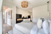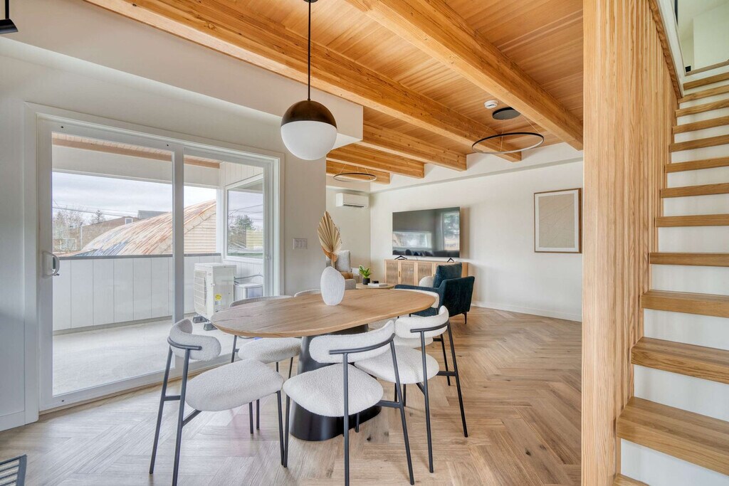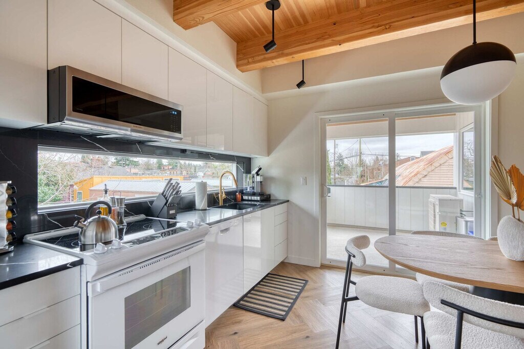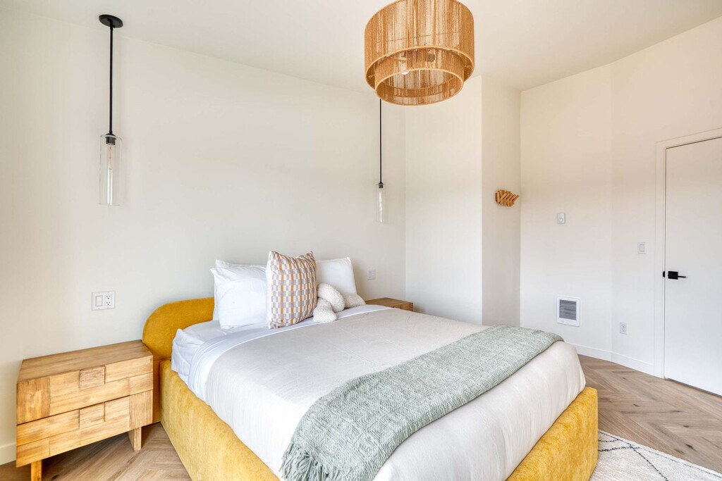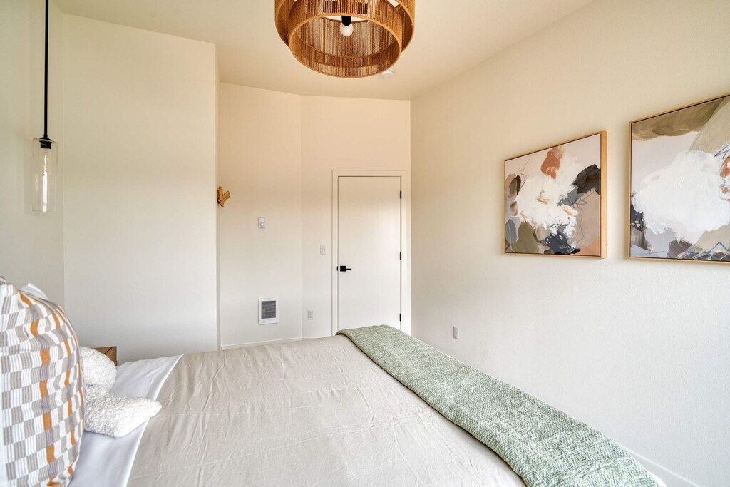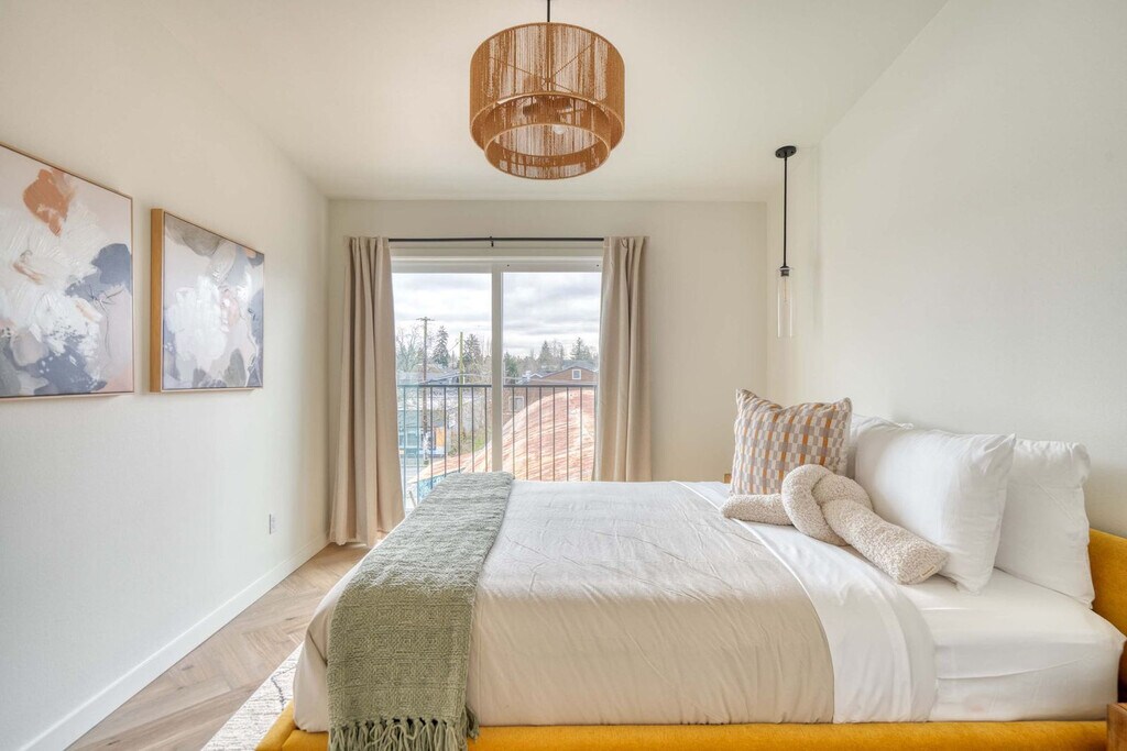 Feel at home in this 3-bedroom townhome in Portland’s Alberta Arts District, featuring soaring ceilings, designer finishes, and two Juliet balconies. The kitchen is fully stocked with cookware and modern appliances. The living area offers a comfy sectional, Smart TV, and access to a small outdoor patio. Upstairs, you'll find two sunlit bedrooms with oversized sliding doors opening to Juliet balconies. The in-unit washer and dryer are located on the third floor for your convenience. Design features include herringbone wood flooring, vaulted ceilings, and stylish, calming interiors with natural finishes. If you’d like full access to all 4 bedrooms and 2 bathrooms, please inquire about booking the full home. There is a $99 per dog fee, with a max of 2 dogs. One of Portland’s most vibrant and walkable neighborhoods, Alberta Arts is bursting with color, culture, and creativity. Murals line the streets, and nearly every block is home to an art gallery, boutique, coffee shop, or food destination. Walk to Salt & Straw for inventive ice cream flavors, grab brunch at Tin Shed Garden Cafe, or enjoy local beers at Great Notion. Alberta Park is just a few blocks away for green space and a relaxing stroll. This centrally located home is just 15 minutes from downtown and 20 from the airport. Quiet hours are in effect from 10 pm to 7 am. Smoking tobacco or marijuana inside is strictly prohibited and if detected, will result in $150 penalty. Events and/or parties are strictly prohibited and will result in fines per host discretion and immediate eviction. Any unauthorized guest is subject to a $150 per guest penalty. Unauthorized use of extra bed/s or bedroom/s a fine of $75. Undeclared pets are subject to a $200 per stay penalty. Any unauthorized early check-in or late check-out is subject to a $75 fee. A lost, missing, or otherwise unreturned key is subject to $100 fee. Missing remotes will incur a $50 fee. Violation of house rules may result in eviction and/or monetary fine. [SI]