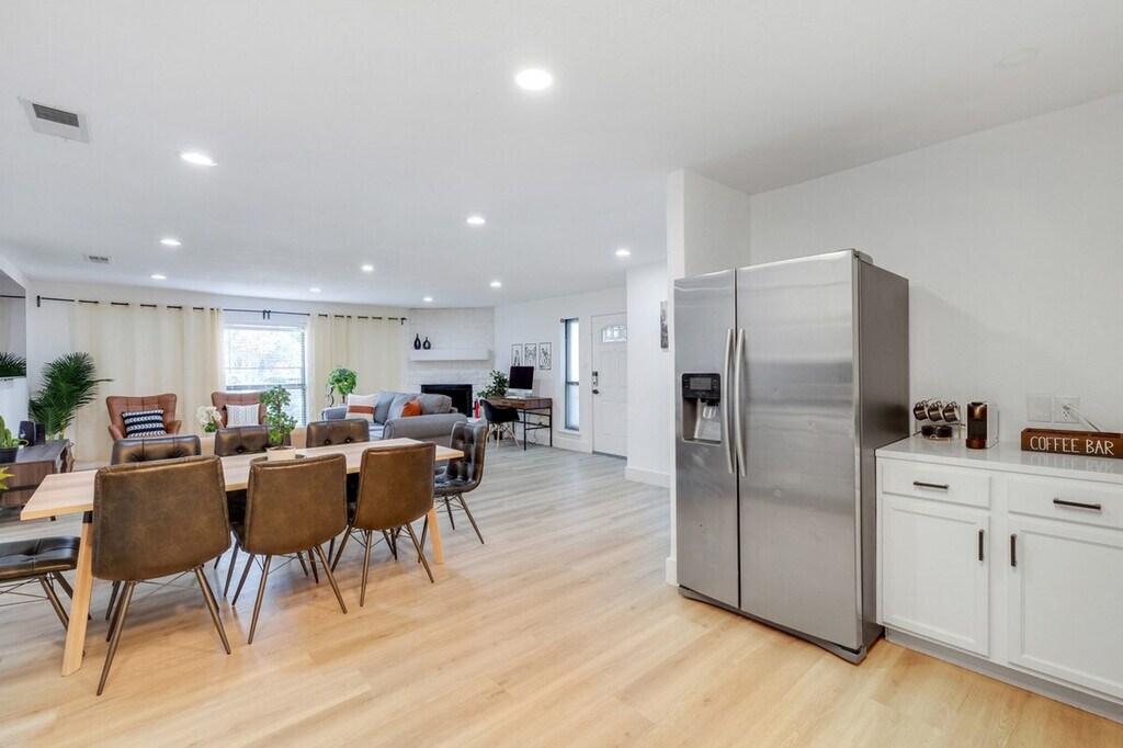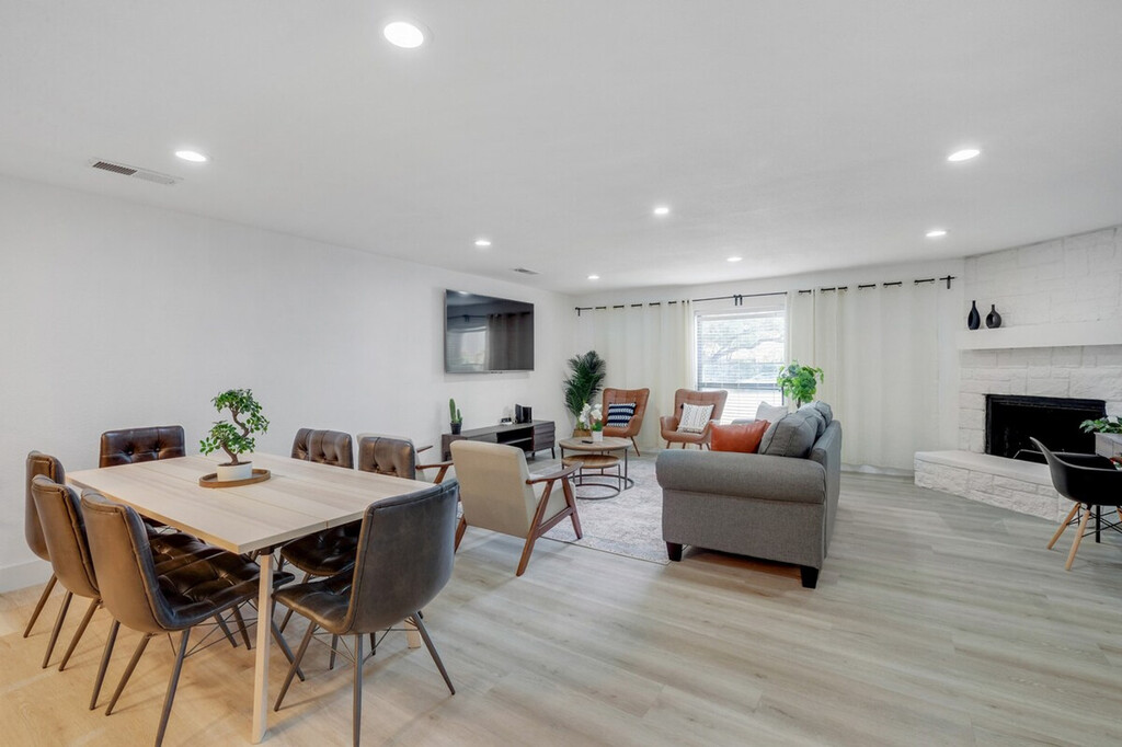 *PREMIER LOCATION, BEAUTIFULLY UPDATED & MOVE-IN READY* Welcome to this beautiful Fully Furnished 4-2-2 home in North Dallas! This home was recently remodeled with meticulous attention to every detail. sitting in the end of a cul-de-sac, this property boasts 4 bedrooms, 2 full baths, and a 2-car garage. Step inside to be greeted by a beautifully designed living room with a brick fireplace, updated kitchen offers SS appliances, quartz countertops, new backsplash and is adjected to a dining table. Master bedroom boasts an updated bath with a new walk-in shower, 3 additional bedrooms share a hall bath with a tub. New vinyl floors run throughout the house with tile in Baths. Private backyard is fully fenced, featuring a spa, a covered patio, and an outdoor sitting area and a grill. Short term lease is available, ideal solution for temporary housing due to relocation or home renovations. Lease includes all furnishings shown in photos, TVs, stocked kitchen, bedding, linens & all appliances including fridge, washer & dryer. There's nothing to bring but your own personal items! Schedule your tour today.