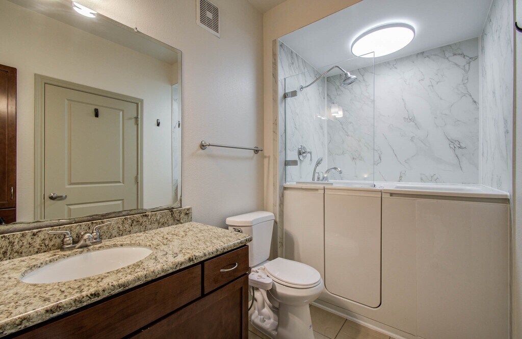 Welcome to 505 Jackson Hill! This unit offers comfort,style,and convenience all in one. Located in the heart of Houston,just minutes from Memorial Park,Buffalo Bayou,and all the dining,shopping,and entertainment Washington Avenue has to offer. Step inside to find an open-concept layout with soaring ceilings,hardwood floors,and an abundance of natural light. The gourmet kitchen features granite countertops,stainless steel appliances,and a large island perfect for cooking and entertaining. The spacious primary suite includes a walk-in closet and a private en-suite bathroom with double sinks,a soaking tub,and a separate shower. Whether you’re working from home or exploring the city,this condo puts you in the center of it all. The primary bathroom has a separate shower and large soaking tub while the secondary bath has a special walk-in tub with a shower fixture. There is a wonderful pool area just steps from the unit on the same floor. MLS# 86524864