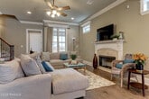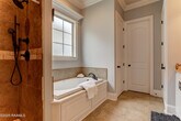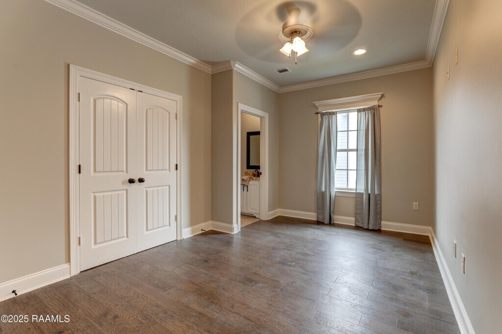 This stunning 7 year old home offers five bedrooms plus a bonus room. Located in the highly sought-after La Bon Vie Subdivision, this home combines an elegant lifestyle with easy living and low maintenance. Walk through the double arched metal doors with glass inlays into a lovely open floor plan. Gun powder grey engineered wood flooring, cypress beams, and beautiful woodwork are among the many amenities this home has to offer. The kitchen features custom bench seating at the bay window, slab granite with porcelain backsplash, undercabinet lighting, and a custom vent hood with pot filler. The kitchen flows into the dining and living rooms, where large windows allow natural lighting and a view of the patio area. The master suite is located downstairs, with four bedrooms and a bonus room upstairs. The bonus room can be used as a home theater, gameroom, or recreation room. The master bedroom features beautiful arched windows. The master bath has a large tiled shower, separate garden tub, double vanities with dressing station, private water closet, a storage closet, and a walk-in master closet with custom shelving. The spacious covered patio features a wood ceiling and outdoor kitchen for great entertaining. Enjoy the ponds and common areas in this lovely gated subdivision with easy access to I-49. The master suite is located downstairs, with four bedrooms and a bonus room upstairs. The bonus room can be used as a home theater, gameroom, or recreation room. The master bedroom features beautiful arched windows. The master bath has a large tiled shower, separate garden tub, double vanities with dressing station, private water closet, a storage closet, and a walk-in master closet with custom shelving. A large under-stairs closet provides additional storage space. The spacious covered patio features a wood ceiling and outdoor kitchen for great entertaining. Enjoy the ponds & common areas in this lovely gated subdivision with easy access to I-49.