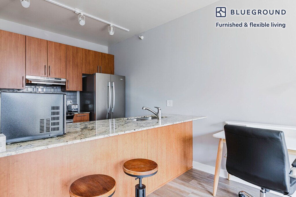 Show up and start living from day one in Chicago with this lovely one bedroom Blueground apartment. You’ll love coming home to this thoughtfully furnished, beautifully designed, and fully equipped Near North Side home with stunning balcony views over the city. (ID #CHI1093) The advertised rate of $2,960/month is the lowest available price, based on a 1 month(s) and 17 day(s) stay with a move-in date of March 4, 2026. If you’re looking for a 1-year stay, the rate is $3,150/month. Rates vary depending on the duration of stay, season, and other parameters. For exact pricing and additional pricing components, please visit our website and enter your desired move-in and move-out dates. The rate is applicable when billed upfront; it can be higher if billed in multiple payments. Brokers are welcome to reach out. Were you looking for an unfurnished lease? Try Blueground instead and upgrade from unfurnished to furnished living: - Furnished at rates comparable to unfurnished - No setup or furniture costs - save thousands - Move-in ready - save time, just bring your suitcase Designed with you in mind As with any Blueground apartment, you’ll find a thoughtfully designed space complete with beautiful furniture and a fully equipped kitchen in this one bedroom property. And, thanks to our superior quality mattresses, fully stocked linens, and towels, you can relax knowing you’ll always feel comfortably at home. When you’re ready for some fun, you can take in the Chicago vibes or bring the entertainment to you with the premium wireless speaker or smart TV. This apartment also offers in-apartment laundry. Sleeping arrangements Queen Bed, 63in/160cm Amenities Building amenities unique to this one bedroom apartment include an on-site: - Doorman - Dryer - Elevator - Swimming pool - Washing machine - Parking - Pets allowed Arrival and ongoing support The entire apartment is yours to enjoy! Throughout your stay, you’ll have access to our Client Experience team through the Blueground App. You can schedule additional cleanings, submit maintenance requests, and view our neighborhood recommendations with just a few taps. We’ll share all details upon confirmation of your stay. Ideally Located This furnished apartment is located in Chicago's Near North Side neighborhood. Part of the storied Miracle Mile, this thriving neighborhood set on the shore of Lake Michigan is home to some of the city's most notable skyscrapers. The Near North Side has a fabulous dining scene, with everything from Chicago-style pizza to casual pubs to five-star restaurants. Neighborhood highlights include the Museum of Contemporary Art and 360 Chicago, a skyscraper with an observation deck. There's also Navy Pier, a lakefront park with casual dining, dinner cruises and carnival rides. The Near North Side is served by the CTA's Brown, Red and Purple Lines, as well as several bus routes. Other things to note Building amenities may have an extra cost. This Blueground apartment has flexible lease options, allowing you to book it for one month, a year, or more. Pets are welcome, though weight limits and breed restrictions apply and may incur fees. Parking is offered based on availability and is subject to a fee. We take great pride in ensuring every photo displayed is shot in our own units with our actual furnishings. That said, we regularly refresh our decor and furniture arrangement, which may differ from what’s pictured. Also note - This apartment is in close proximity to a fire/police station, so you can expect noise from time to time - This is a guarded building equipped with a doorman/concierge at all times [SI]