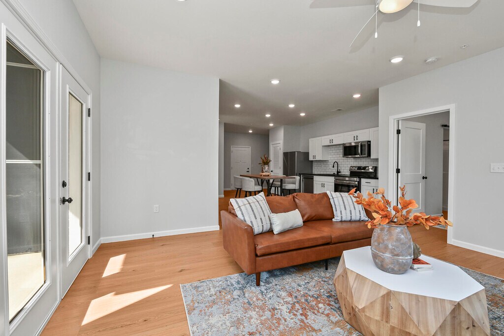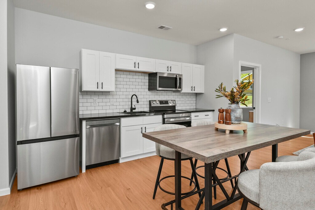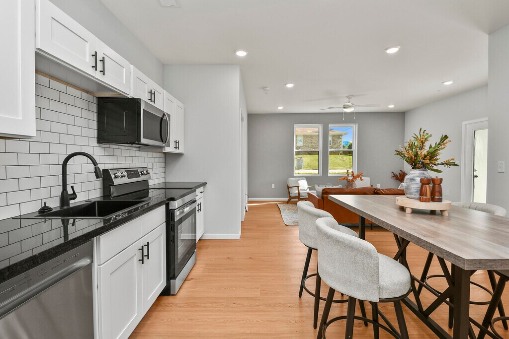 Now pre-leasing for October: a one-bedroom apartment for rent in Central Springfield near Missouri State University. The Knoll is a brand-new apartment community developed by Valiant Group at 505 W Grand St.Apartment 103 is a ground-level one-bedroom Standard unit that features 9-foot ceilings,luxury vinyl plank flooring,and a bold blue accent wall in the living room. The galley-style kitchen includes white shaker cabinets,matte black hardware,and a deep stainless steel farmhouse sink with pull-down sprayer. There's also space for a dining table,plus oversized windows that fill the home with natural light.The large bedroom connects to a bathroom with a walk-in shower,cultured marble vanity,and matte black finishes. The space includes a large walk-in closet with washer and dryer hookups. Enjoy access to secure,on-site bicycle storage and 24/7 maintenance. Rent includes lawn care and trash. Residents pay electric,$25/month for water,and $25/month for high-speed internet.Located in the West Central neighborhood of Springfield,MO,The Knoll is just minutes from Missouri State University,downtown Springfield,Jordan Valley Park,and local shopping and dining. Move-in ready in October 2025. Reserve your unit and apply today!Pet Friendly Property! Two pets max with pet deposit and monthly pet rent (some breed restrictions)