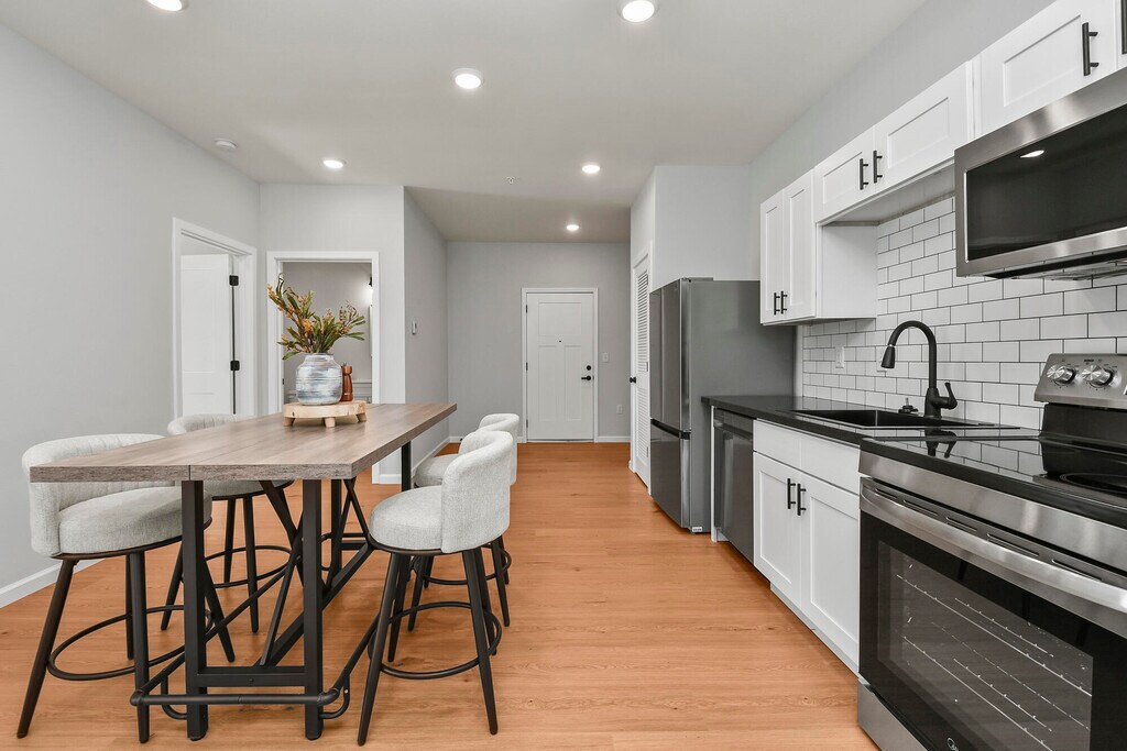 Now pre-leasing for October: spacious two-bedroom,two-bathroom apartments for rent at The Knoll,a brand-new apartment community near downtown Springfield,developed by Valiant Group.Inside,you'll find a thoughtfully designed interior featuring pale blue walls,a bold blue accent wall in the living room,and natural wood colored luxury vinyl plank flooring throughout. A welcoming entryway opens to a galley-style kitchen with white shaker cabinets,full upper storage,matte black hardware,and a single-basin stainless steel farmhouse sink with a pull-down sprayer faucet. The kitchen has space for a dining table that seats six and flows into a bright living room lit by four large windows. Step outside onto your private patio,perfect for quiet mornings or relaxing evenings.Both bedrooms feature walk-in closets,large windows,and modern ceiling fans. The primary bedroom includes a private en-suite bathroom with direct walk-in closet access. Each bathroom features a cultured marble vanity,matte black fixtures,a walk-in shower,and farmhouse-style light fixtures. A dedicated laundry room with washer/dryer hookups and extra storage completes the space. Residents at The Knoll also enjoy access to a secure,on-site bicycle storage room. Tenants pay electric and there is a $25 water fee and a $25 charge for internet. Lawncare and trash are included.Located in the heart of the West Central neighborhood,The Knoll offers modern new construction apartments just minutes from Missouri State University,local parks,and the downtown Springfield district filled with restaurants,coffee shops,and boutique shopping. Live steps from the Walmart Neighborhood Market,MSU campus,Jordan Valley Park Trails,and Grant Beach Park. Opening in October 2025. Secure your spot today and apply now!