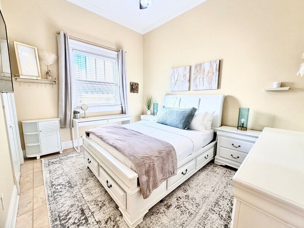 Welcome to the heart of Hyde Park! Feel at home in this beautifully decorated apartment, perfectly situated for exploring Tampa's iconic spots. The living room invites you to relax on plush leather and velvet furniture, unwind by the cozy indoor fireplace, or stream your favorite shows on the 65” smart TV. The fully equipped kitchen has everything you need to prepare meals in style, including cooking basics, a blender, toaster oven, microwave, stove, dishwasher, coffee maker, coffee, hot water kettle, and wine glasses. Other comforts include a refreshing bathroom with a bathtub and provided essentials, air conditioning, and a small in-unit washer and dryer for your convenience. Step outside to your private courtyard, an open space furnished for relaxation, with a BBQ grill for an outdoor meal or gather around the fire pit for a cozy evening under the stars. A Pack ’n play/travel crib is available upon request. Personal training and yoga services are also available for an additional hourly fee. Luggage drop-off is allowed for early arrivals or late departures. Early check-in may be available for a small hourly convenience fee, provided the apartment is not booked the night before. This home is perfectly situated in the vibrant and historic Hyde Park, a short walk from Hyde Park Village, where you can explore trendy boutiques and dine at top-rated restaurants. Enjoy a scenic bike ride along Bayshore Boulevard or easily access Tampa's most popular destinations. You are just minutes away from Tampa’s iconic spots, such as Amalie Arena, Sparkman Wharf, and Bay Shore for biking along the water. Explore the vibrant energy of Water Street, immerse yourself in the history of Ybor City, or unwind at Armature Works. Getting around is a breeze with one free, dedicated parking space at the rear of the apartment and plenty of free street parking out front. Many attractions are just a short drive or walk away, including Hyde Park Village (0.3 miles), The University of Tampa (0.5 miles), Tampa General Hospital (1 mile), Tampa Convention Center (1 mile), Amalie Arena (1.4 miles), Sparkman Wharf (1.7 miles), Downtown Tampa (1.9 miles), Armature Works (2.1 miles), Tampa International Airport (5 miles), Ybor City Historic District (4.2 miles), Busch Gardens (10.9 miles), and Downtown St. Pete (21.6 miles). A first aid kit is provided. For those mixing work and pleasure, a convenient fold-away desk and high-speed Wi-Fi create a perfect workspace. [SI]