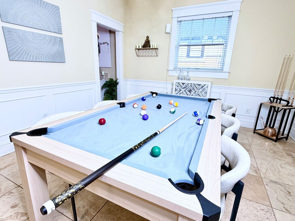 Discover your private Tampa compound in the heart of historic Hyde Park and feel at home in this rare dual-townhouse offering that combines two side-by-side luxury homes into one expansive group retreat, perfect for large families, friend groups, retreats, or corporate stays for up to 16 guests. The property offers 6 bedrooms and 4 full bathrooms and 2 half bathrooms. Enjoy the space, privacy, and amenities of two high-end townhomes while staying under one reservation, an ideal set-up for groups who want to be together without feeling crowded. Each townhouse features a spacious living room with oversized sectional seating, a cozy indoor fireplace, a 75” Smart TV with an immersive sound system, board games and books. One unit also includes a premium full-body massage machine for ultimate relaxation. The dining and game room in Townhouse #2 has a convertible pool table and ping pong table, perfect for group meals and entertainment. There is a dining table seating 6 in both homes and an additional café-style table seating 4. Both kitchens are fully equipped for serious cooking and entertaining with stainless steel appliances, Keurigs, French presses, coffee makers, air fryers, blenders, toaster ovens, full cookware and BBQ tools. Each townhouse includes access to a fully equipped gym (cardio, cable machines, free weights) and an infrared sauna with Red Light Therapy and Salt Therapy. Both homes feature private enclosed patios with lounge seating, fire pits and BBQ grills, perfect for evening wine, morning coffee, or group dinners. Each unit has a washer and dryer, an iron and a full laundry set-up. Up to 2 dogs are welcome with prior approval for a pet fee. Personal training and private yoga are available for an additional fee, as is early check-in and late checkout, subject to availability. Walk to Hyde Park Village (restaurants, shopping), Bayshore Boulevard (waterfront walking and biking) and the University of Tampa. It's a short drive to Downtown Tampa, Amalie Arena, the Riverwalk, the Tampa Convention Center and TPA Airport (10–15 min). The gym may be shared during the week and occasionally by other guests if apartments in the back of the townhomes are occupied. Includes high-speed Wi-Fi and ethernet workstations. [SI]