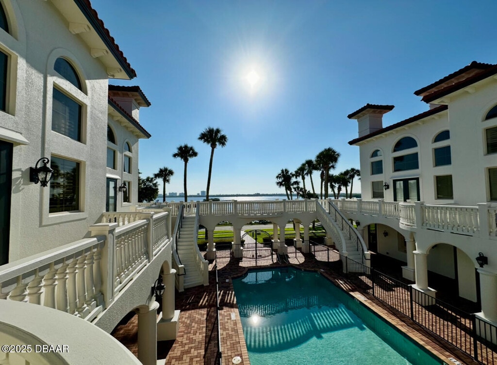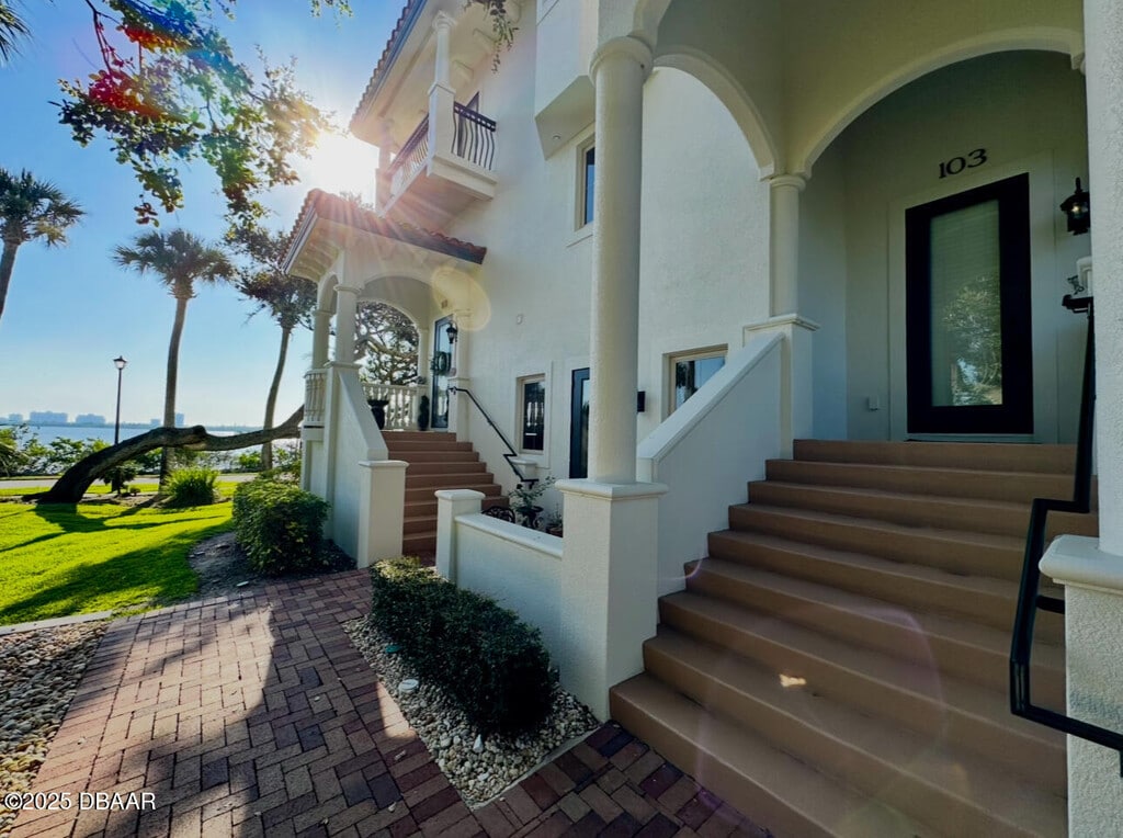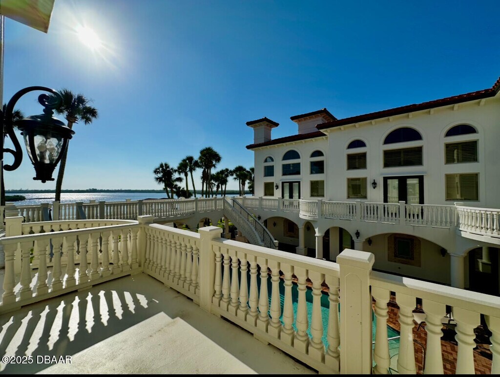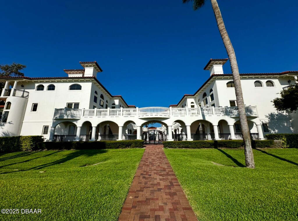 Located on the Port Orange Riverside scenic drive, just over the bridge from the beach and close to all major highways, this three-story beauty showcases the premier lifestyle that awaits you. The breathtaking, Mediterranean style, Portofino Cove is beautifully framed with columns, arches, and barrel tile with a luxurious courtyard that has water views and a sparkling pool sprawling over 2700 sq. ft. This three bedroom, two and a half bath townhome style unit invites you into a private entrance welcoming foyer of which you can access the home's main floors. The large kitchen is enhanced with stainless steel appliances, granite countertops, wood cabinetry, and a large walk-in pantry. The living area is illuminated by abundant windows on three sides and a two-story ceiling wrapped in crown molding. The third floor is dedicated to the Master Suite with a "treehouse" view. There is an expansive walk-in closet, a private balcony, and a luxurious jetted bath with a view and an oversized shower. The mother-in-law suite has two additional bedrooms and a den each with private consists of eight residences each with a detached two-car garage. BOAT DOCK NOT INCLUDED $150.00 Administrative Fee