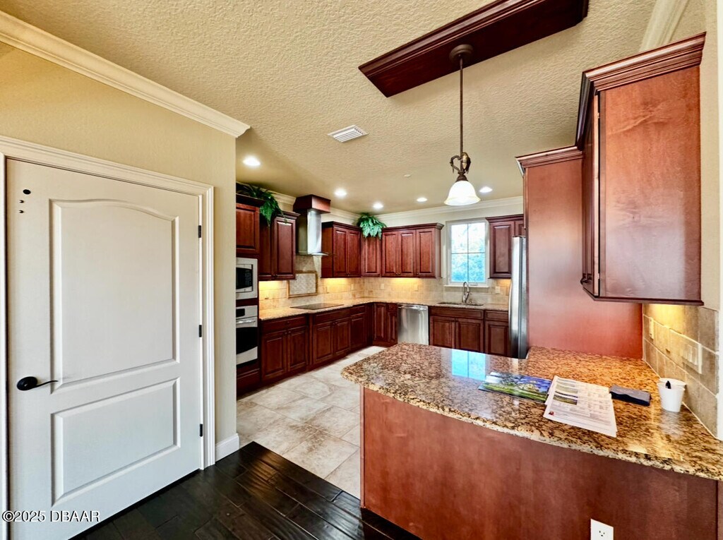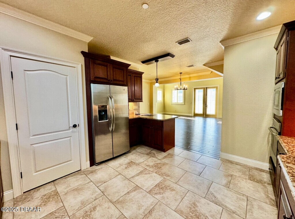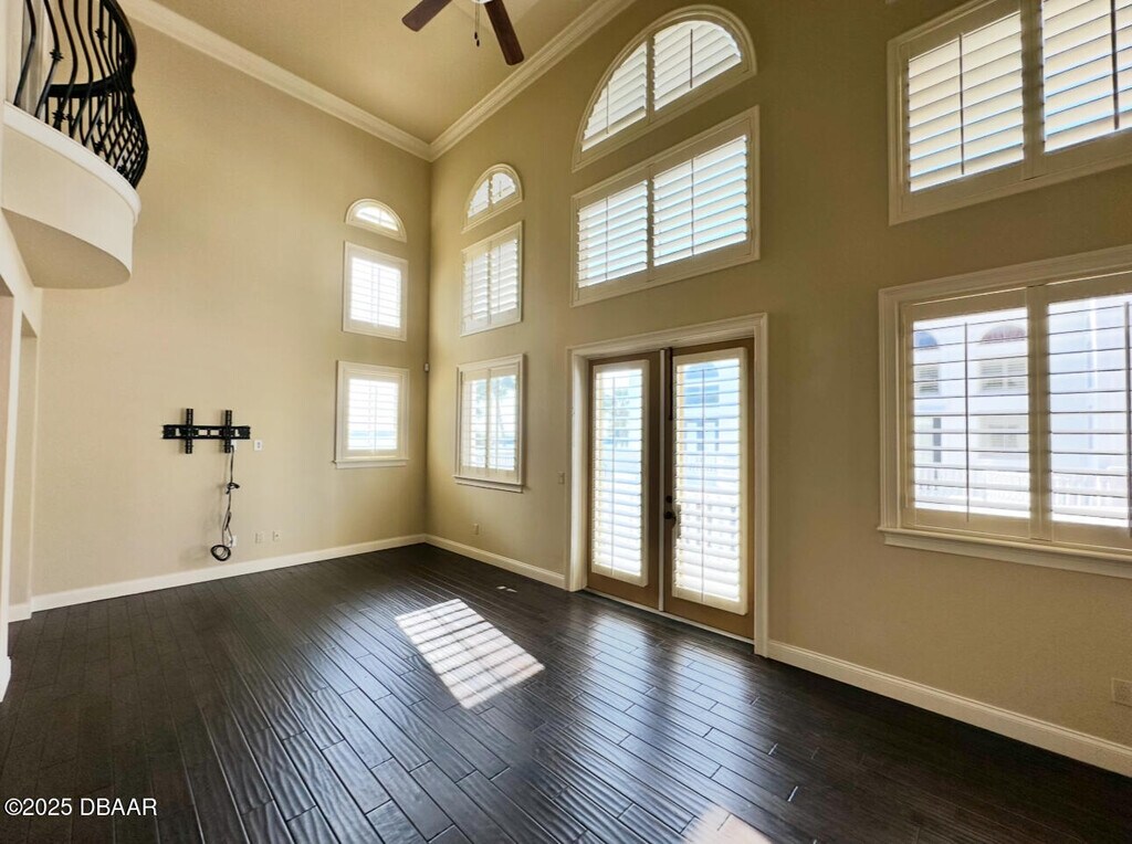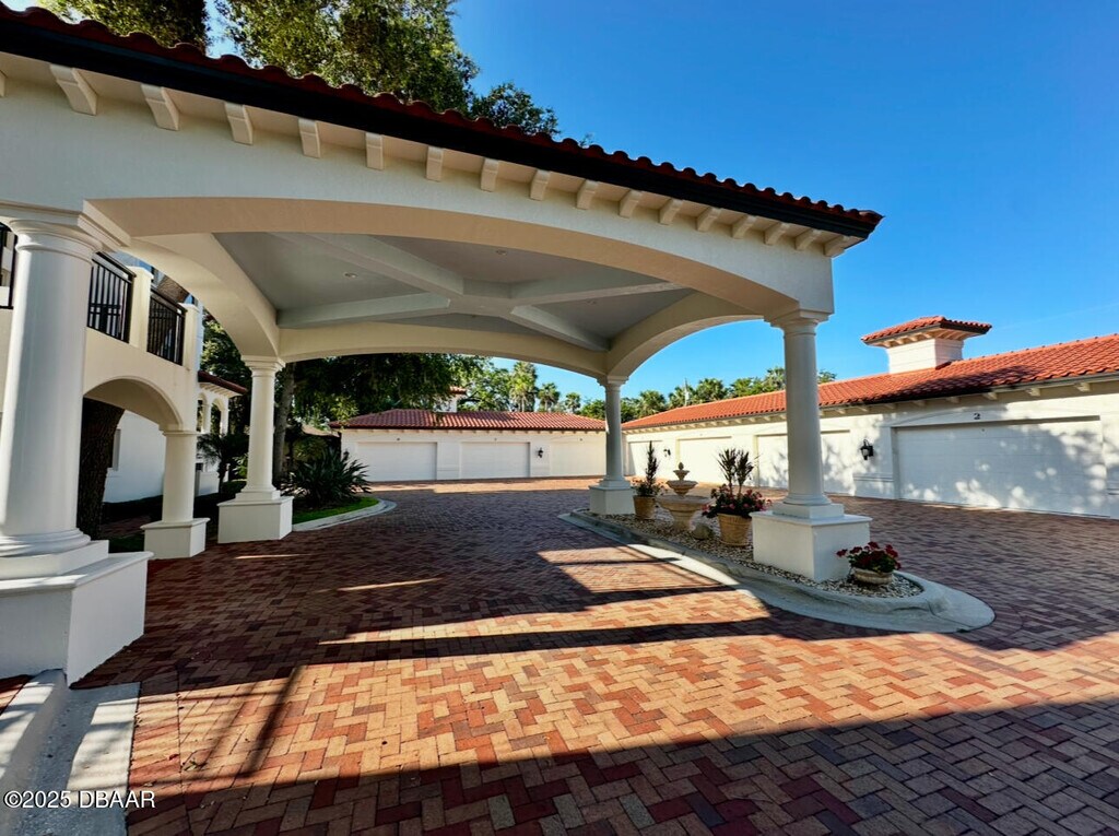 Located on the Port Orange Riverside scenic drive, just over the bridge from the beach and close to all major highways, this three-story beauty showcases the premier lifestyle that awaits you. The breathtaking, Mediterranean style, Portofino Cove is beautifully framed with columns, arches, and barrel tile with a luxurious courtyard that has water views and a sparkling pool sprawling over 2700 sq. ft. This three bedroom, two and a half bath townhome style unit invites you into a private entrance welcoming foyer of which you can access the home's main floors. The large kitchen is enhanced with stainless steel appliances, granite countertops, wood cabinetry, and a large walk-in pantry. The living area is illuminated by abundant windows on three sides and a two-story ceiling wrapped in crown molding. The third floor is dedicated to the Master Suite with a "treehouse" view. There is an expansive walk-in closet, a private balcony, and a luxurious jetted bath with a view and an oversized shower. The mother-in-law suite has two additional bedrooms and a den each with private consists of eight residences each with a detached two-car garage. BOAT DOCK NOT INCLUDED $150.00 Administrative Fee