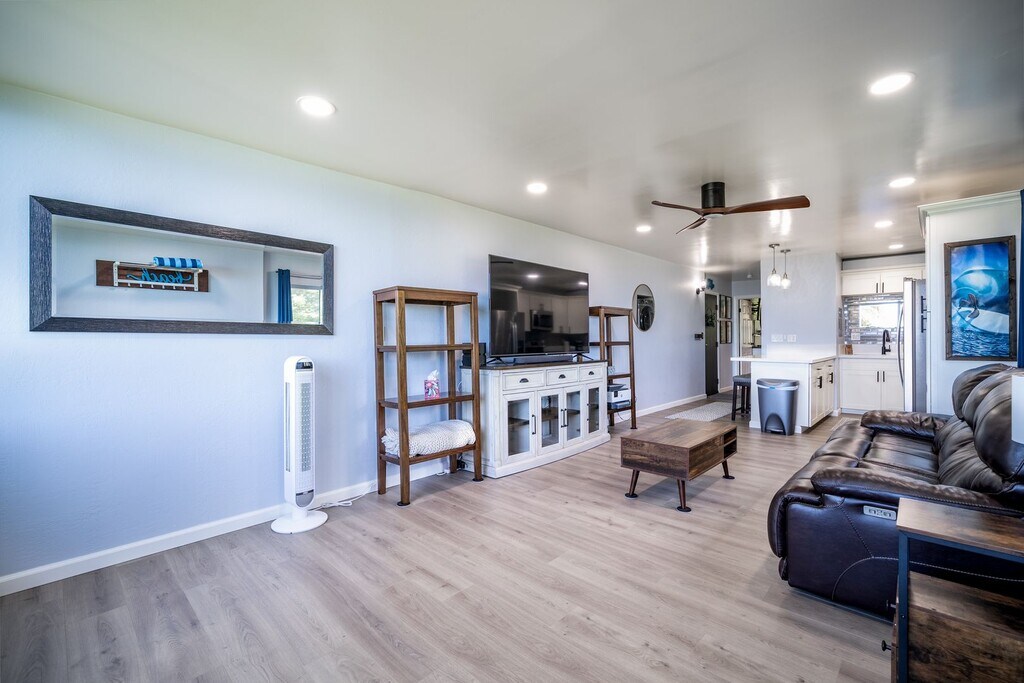 This is a must-see! Tucked beneath Crouching Lion in Building 3 of Makaua Village, Unit #317 is a rarely available ocean-facing end unit with a large side window overlooking Kahana Bay. The views are incredible—you can watch humpback whales breach from your living room in season. Fully renovated in 2024 with a modern, fresh design, this turnkey condo is ready for you to start living the beach life now. Inside, enjoy all-new double-pane windows, a beautifully renovated bathroom, new paint, brand-new flooring, updated lighting and ceiling fans, and a finished lanai that expands the living area—perfect for morning coffee or windward sunsets. The home is fully furnished for an easy move-in. Two assigned parking stalls and ample guest parking add everyday convenience. Makaua Village is a beautiful community in the peaceful town of Ka'a'awa, steps from the newly reopened historic Crouching Lion Bar & Restaurant and Hala Tree Cafe....a perfect addition to the laid-back lifestyle! Highlights 1 bedroom, 1 bathroom Approximately 620 sq ft Fully furnished and newly renovated (2024) Ocean-facing end unit in Building 3 Side window with Kahana Bay views Finished/enclosed lanai for larger living space All-new double-pane windows, new lighting and ceiling fans Fully renovated bathroom, new flooring, fresh paint 2 assigned parking stalls + ample guest parking Available now Utilities: Water, sewer/trash, maintenance grounds & structure, and internet are all included. Tenant pays electric. Makaua Village, 51-636 Kamehameha Hwy #317, Ka'a'awa, HI 96730 Steps to coastline, Kahana Bay, scenic hikes, and laid-back local spots How to view Showings by appointment. Message with your name and desired move-in date to schedule a tour. Video link (youtube):