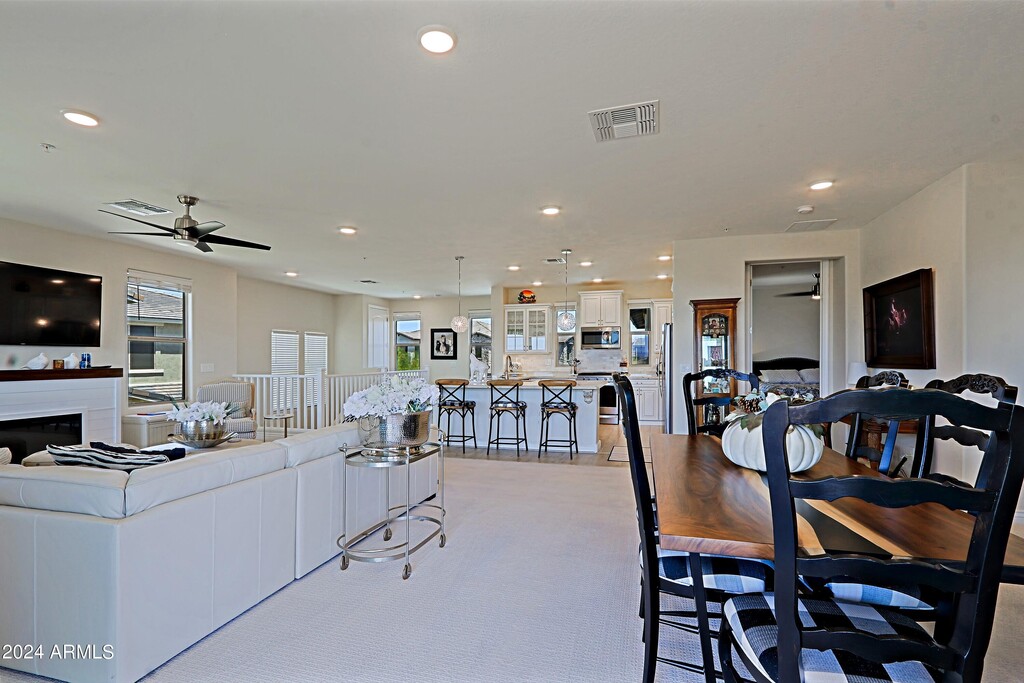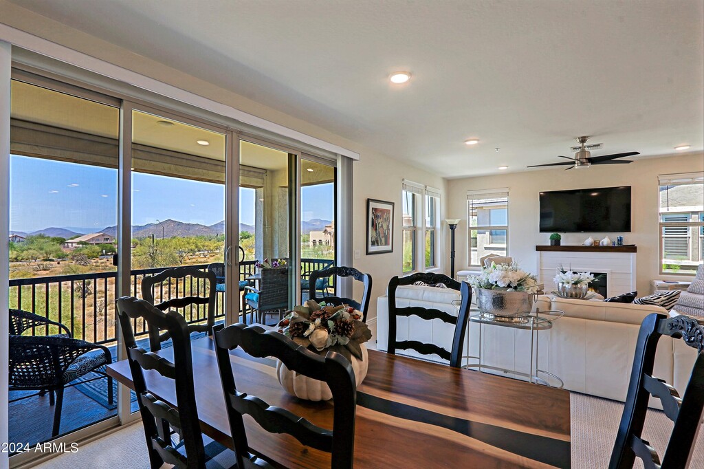 AVAILABLE FOR THE 2025 SEASON. ALLOCATED IN HIGH SONORAN DESERT WITH LUSH DESERT LANDSCAPING AND MOUNTAIN AND DESERT VIEWS. GATED COMMUNITY WITH COMMUNITY NIGHT LIGHTING. TWO BEDROOM/TWO BATH/DEN. LEVEL UPPER UNIT WITH TWO CAR GARAGE. Beautifully appointed home with open areas. Great room with fireplace; sliding doors to lighted patio/balcony. Formal dining room,designer kitchen with granite island and glass upper cabinetry,beverage cooler,gas stove. Primary bedroom spacious with walk-in closet and bathroom has large walk-in shower,dual vanities and large mirror. Second bedroom has bath with single vanity and tub/shower combo. Den with wonderful views. Laundry room with cabinets. Home has Smart Home features and Energy saving features. Amentites include barbecues,fire pit and fitness center. Perfect unit for enjoying Arizona at its best! Community Amenities: Pool: Enjoy the community pool,perfect for a refreshing dip. Workout Facility: Stay active with the on-site fitness center. Proximity to Nature: Take advantage of nearby hiking trails for outdoor adventures. Bright and Quiet: The unit is filled with natural light.