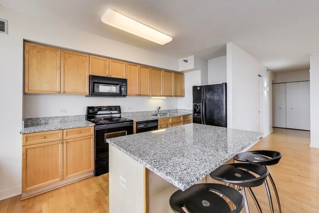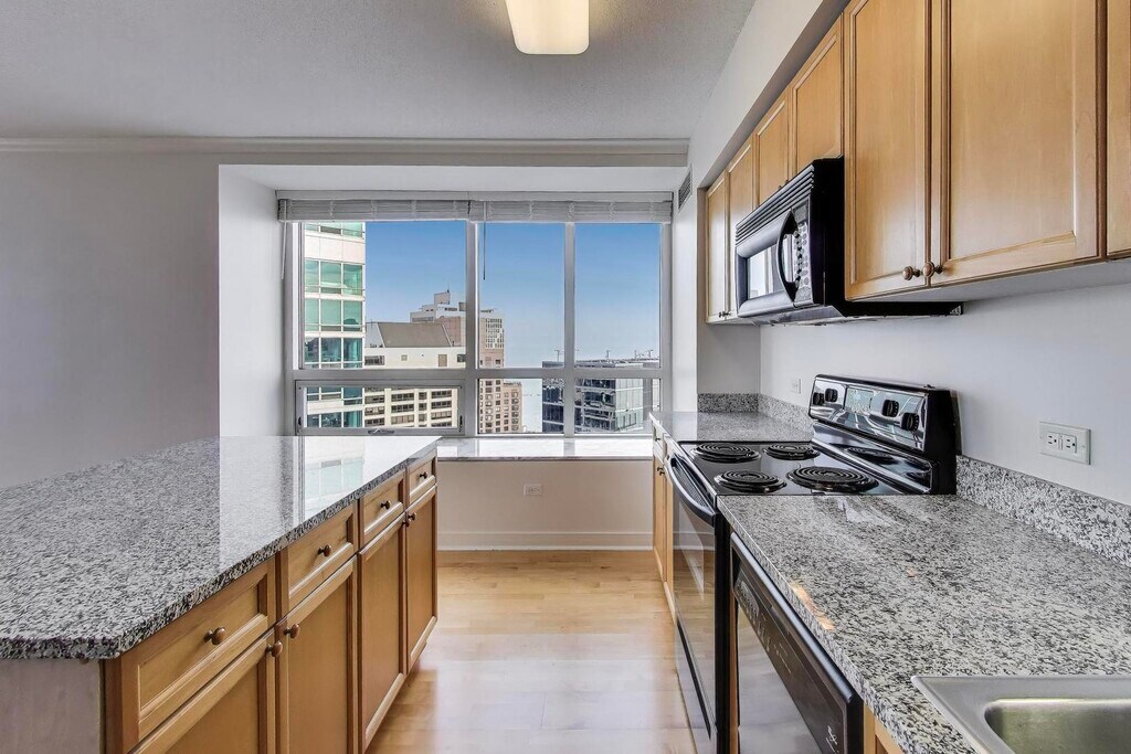 Michael MaierBeautiful corner two-bedroom residence offering over 1,445 square feet of living space. The thoughtfully designed floor plan features a split-bedroom layout, providing complete privacy for both bedrooms. The expansive living and dining area showcases hardwood floors and dramatic oversized windows that frame stunning city skyline views. An open-concept kitchen features a large island-perfect for meal prep and entertaining-along with sleek new gunmetal gray appliances. The spacious primary suite offers two large windows and an impressive, oversized walk-in closet. The primary bath includes a large vanity with storage, new lighting and a relaxing soaking tub/shower combination. The second bedroom is generously sized, easily accommodating a queen-size bed, and features a full wall of closets. Additional highlights include an in-unit washer and dryer for added convenience and an abundance of living space ideal for everyday comfort and entertaining. This full-service building offers 24-hour door staff, an exercise room, entertainment suite, on-site management, and on-site maintenance. Ideally located close to everything Streeterville has to offer-restaurants, grocery stores, and just minutes from Northwestern Medical Campus. Rental Parking Available. Available March 1,2026