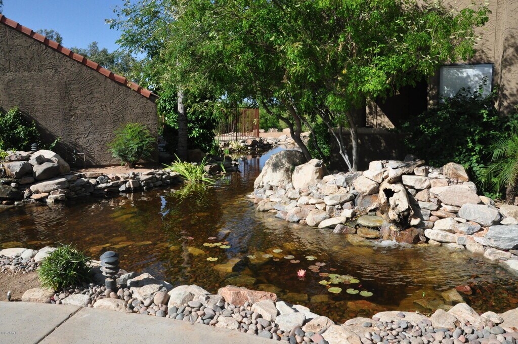 Gated Scottsdale Golf Course Community with heated pool,jacuzzi and workout facility! This spacious condo with PRIVATE PATIO,is located w/in the beautiful gated community of Milano Terrace,this unit features SS appliances,Washer & Dryer,vaulted ceilings,wood laminate flooring,fireplace,large master suite w/ walk-in closet,private 1 car garage,outside storage closet on the private terrace patio. Livingroom with fireplace and office The community borders Stone Creek Golf Course,walking/biking trails. Features resort style pools,spa & community bbq areas,w workout facility.