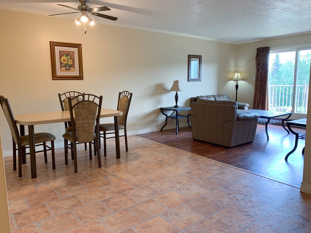 Comfortable and convenient "home away from home" located in a quiet area of Chetwynd. This suite is fully furnished and tastefully decorated, providing everything you need for a relaxing stay. You'll find all the essentials, including kitchenware, bedding, and towels, so there's no need to live out of a suitcase – simply unpack and settle in! For your convenience, this suite also offers extra storage space and a private balcony. All utilities and Wi-Fi are included in the price. You'll also have access to a laundry room located on every floor. Rent:$1995.00 Deposit $997.50 Approved applications are required for each individual 19+ who will reside in the unit prior to a showing.