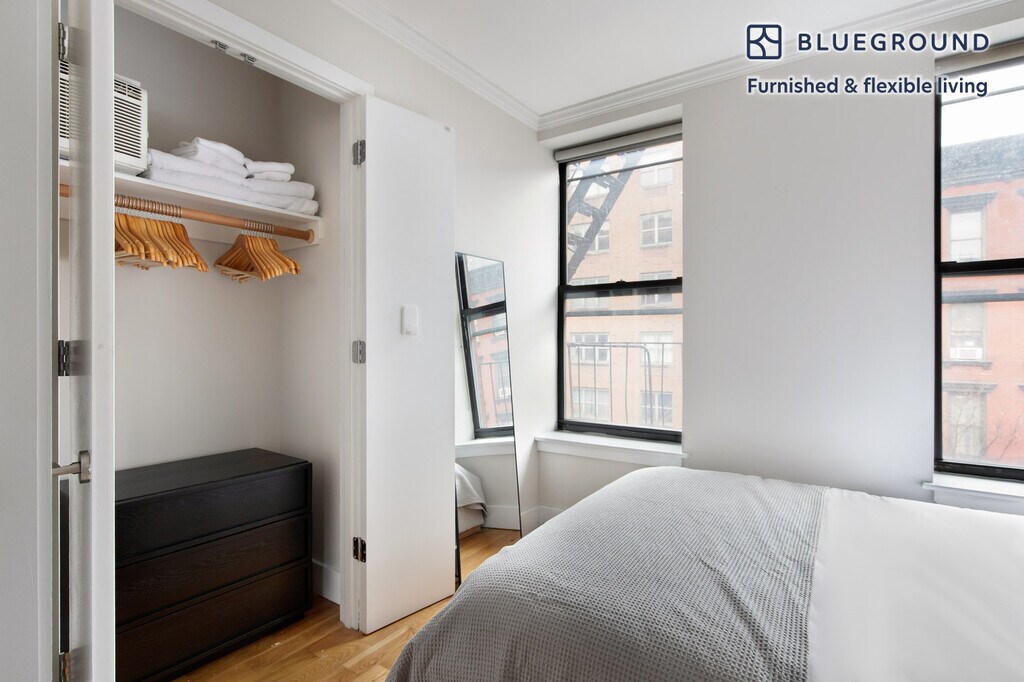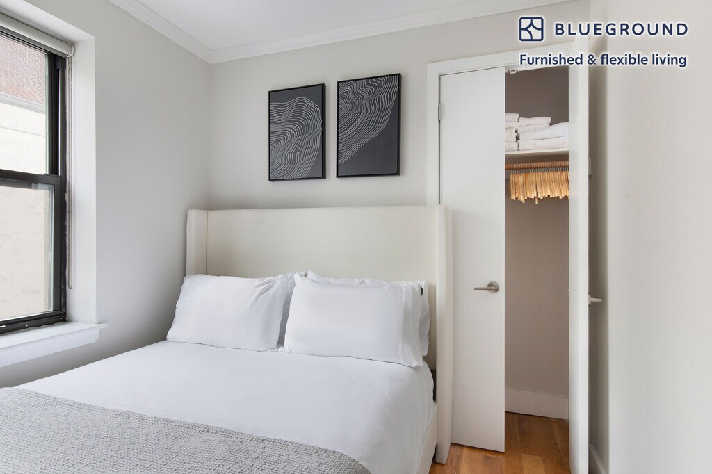 Show up and start living from day one in New York with this charming two bedroom Blueground apartment. You’ll love coming home to this thoughtfully furnished, beautifully designed, and fully equipped Hell's Kitchen home. (ID #NYC1878) The advertised rate of $6,250/month is the lowest available price, based on a 1 month(s) and 29 day(s) stay with a move-in date of December 13, 2029. If you’re looking for a 1-year stay, the rate is $6,460/month. Rates vary depending on the duration of stay, season, and other parameters. For exact pricing and additional pricing components, please visit our website and enter your desired move-in and move-out dates. The rate is applicable when billed upfront; it can be higher if billed in multiple payments. Brokers are welcome to reach out. Were you looking for an unfurnished lease? Try Blueground instead and upgrade from unfurnished to furnished living: - Furnished at rates comparable to unfurnished - No setup or furniture costs - save thousands - Move-in ready - save time, just bring your suitcase Designed with you in mind Thoughtfully designed with bespoke finishes, modern furnishings, and a fully equipped kitchen, you’ll enjoy that “I’m home” feeling with this Blueground apartment. Whether you’re lounging in your sophisticated living room streaming the latest and greatest entertainment on the smart TV or premium wireless speaker, or getting some well-earned rest on the superior quality mattress with fully stocked linens, you’ll fall in love with everything this Hell's Kitchen apartment has to offer. This apartment also offers in-apartment laundry. Sleeping arrangements Queen Bed, 63in/160cm Queen Bed, 63in/160cm Amenities Building amenities unique to this two bedroom apartment include an on-site: - Dryer - Washing machine Arrival and ongoing support The entire apartment is yours to enjoy! Throughout your stay, you’ll have access to our Client Experience team through the Blueground App. You can schedule additional cleanings, submit maintenance requests, and view our neighborhood recommendations with just a few taps. We’ll share all details upon confirmation of your stay. Other things to note This Blueground apartment has flexible lease options, allowing you to book it for one month, a year, or more. Please keep in mind that this is a walk up building. Brokes CYOF. We take great pride in ensuring every photo displayed is shot in our own units with our actual furnishings. That said, we regularly refresh our decor and furniture arrangement, which may differ from what’s pictured. [SI]