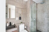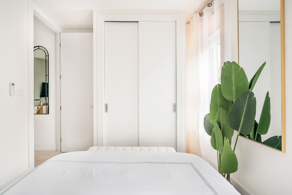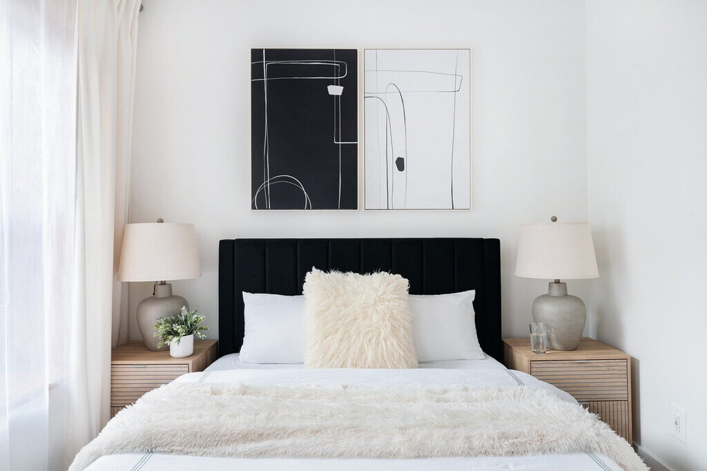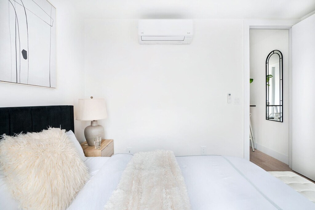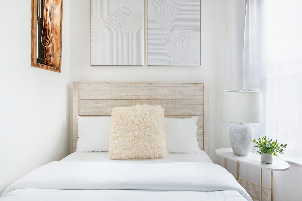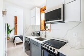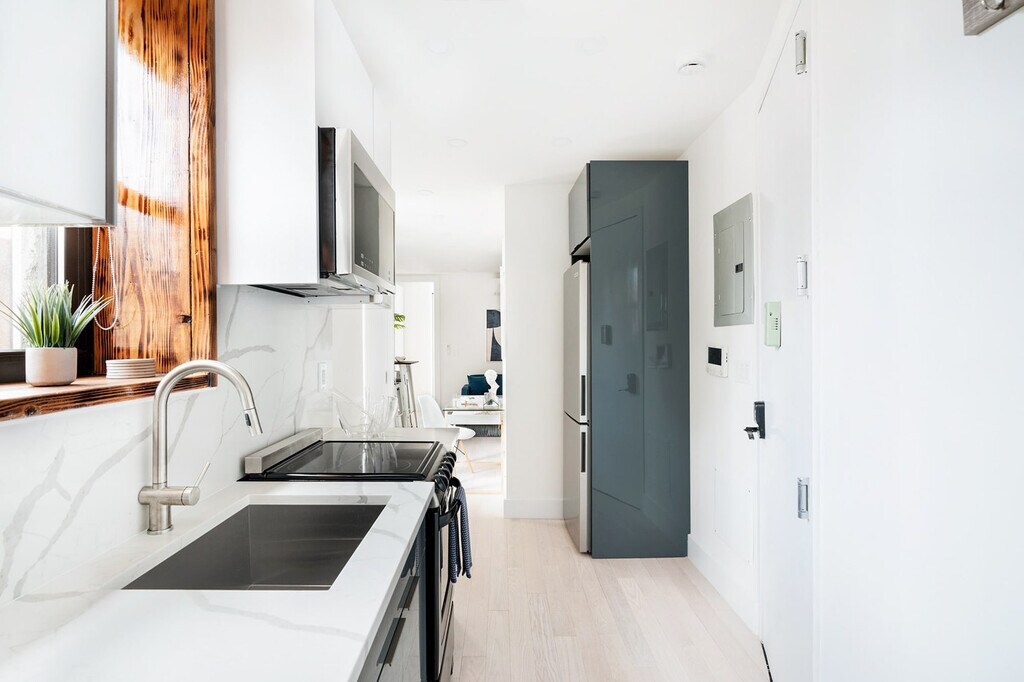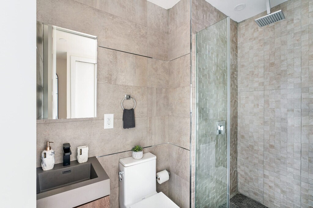 Welcome to 515 W 48th St, a stunning 2-bedroom apartment located in the heart of Midtown West, just steps away from world-renowned theaters, restaurants, and shopping destinations. This apartment is fully furnished with modern and stylish furniture, making it the perfect place to feel at home. This fully furnished apartment is ideal for both short-term and long-term stays. It features 14-foot high ceilings dappled with skylights in the living room and bathroom, bringing full and natural illumination into the space. The two bedrooms each have a comfortable queen-sized bed with high-quality linens, ensuring a good night's sleep. Ample closet space is available for easy storage of your belongings. The apartment also includes a washer and dryer, high-speed Wi-Fi, and central air conditioning and heating for your comfort. Cleaning and maintenance services are available upon request, ensuring a clean and well-maintained living space throughout your stay. Hell's Kitchen is a vibrant neighborhood on the west side of Manhattan known for its diverse dining options, thriving theater district, and stunning parks. Its central location and easy access to public transportation make it a popular destination for locals and tourists alike. Smoking on the property is prohibited and will incur a fine of up to $1,200. Pets are allowed only with prior approval by building management, and an extra fee is incurred for approved pets. Please be considerate of your neighbors and refrain from hosting parties. Ensure all electronic devices, lights, and AC are turned off when leaving the apartment. A trusted partner will not enter your apartment without your consent unless there is reasonable cause such as a leak or fire. A trusted partner will not be responsible for any lost or stolen items. [SI]