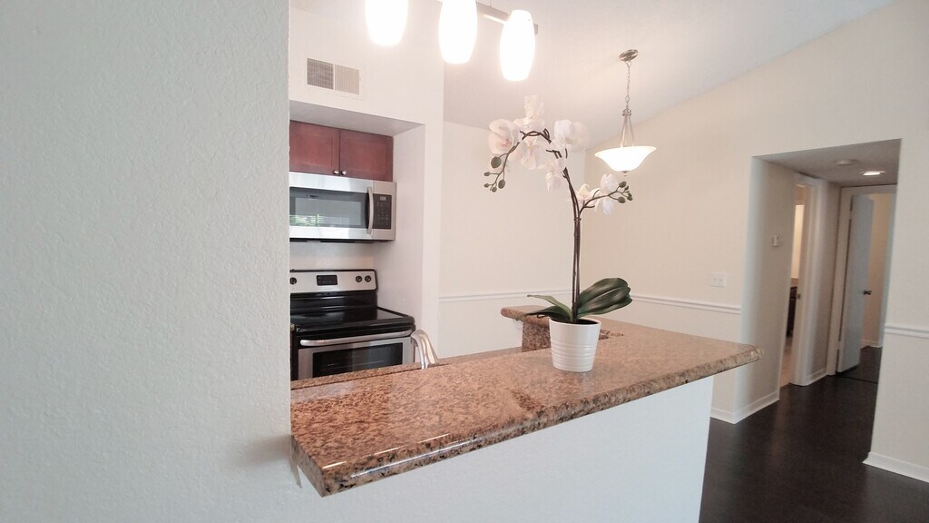 Beautiful remodeled Mediterranean style condo is remarkably distributed. Incredible master room, wood floors, fascinating kitchen with granite tops, new stain steel appliances and wood cabinets, exquisite living room area and gorgeous bathroom. Kitchen equipped with all appliances. Plus washer and dryer. Located in the one of a kind community of Villa Medici which offers resort style living with gate, on site management, brand new club house with a theater/media room, well equipped gym, tennis court, 2 big swimming pools & heated spa. Located within minutes of I-4 , Millenia, Universal Studios, Downtown Orlando, Sea World, Disney, Valencia West Campus, Dr. Phillips and Windermere. For a video of the property go to