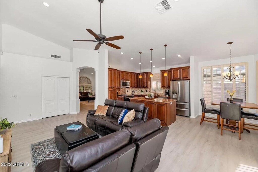 Fully furnished 4 bedroom, 2 bath home designed for comfort and style. The upgraded kitchen features granite counters, stainless steel appliances, and custom cabinetry, flowing into a spacious living room and formal dining area. The primary suite offers a private seating space with direct patio and pool access. Relax in the spa-like bathroom with walk-in shower, rain shower head, body jets, and jetted tub. The backyard includes a fenced pool and plenty of room for entertaining. Additional features include custom shutters, water softener, and 2.5-car garage with storage. Pool and landscaping service included. Close to Chandler Fashion Center, top dining, shopping, and quick access to 101, 202, and I-10.Security Deposit: 1x monthly rentCleaning Fee: $500 NRAdmin Fee: $250 NRPet Fee: $250 per pet NRResident Benefits Package*: $49.95/month*Resident Benefit Package (RBP) Our program handles insurance, and more at a rate of $49.95/month, added to every property as a required program inclusive of renter's insurance. More details upon application.If you provide your own insurance policy, the RBP cost will be reduced by the amount of the insurance premium billed $14.95 by Second Nature Insurance Services (NPN No. 20224621).