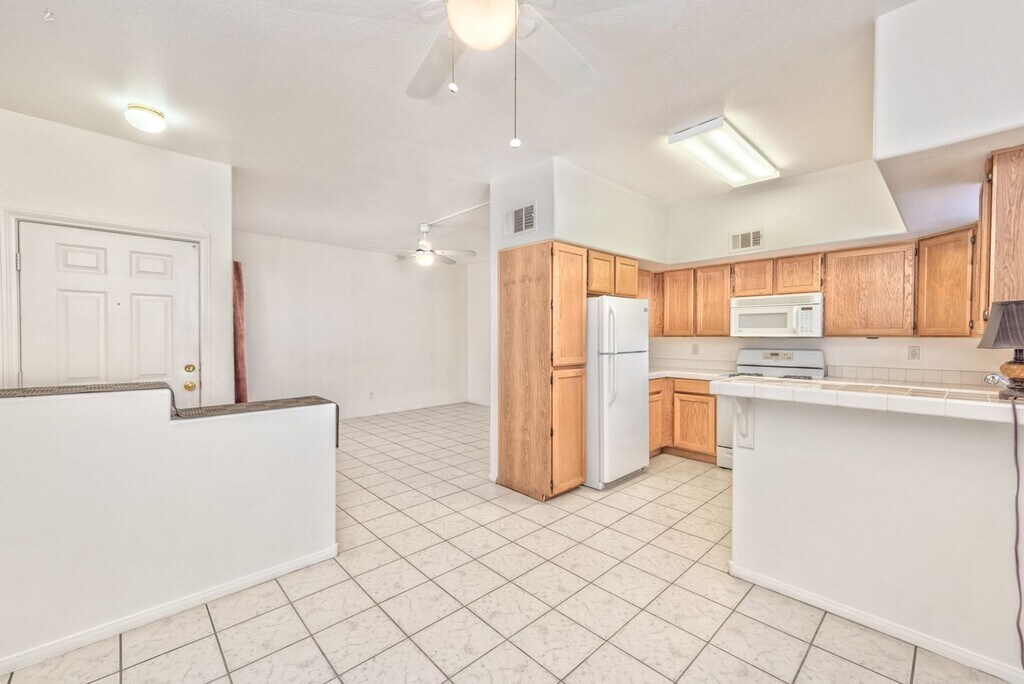 Charming 2-Bedroom First-Floor Condo with Covered Patio! This inviting condo features a spacious front living room with high ceilings throughout, creating an open and airy atmosphere. Enjoy a separate dining area equipped with a ceiling fan. With recently renovated bathrooms and a kitchen that includes a garden window, all-white appliances, quartz-countertops, and tile flooring. The large master bedroom offers patio access, a ceiling fan, and a walk-in closet, along with a private bath separate from the second bedroom. The unit also includes a washer and dryer for added convenience. Don’t miss out on this must-see gem—it won’t last long! All Faranesh Real Estate and Property Management residents are enrolled in the Resident Benefits Package (RBP) for​​‌​​​​‌​​‌‌​‌‌​​​‌‌‌​​‌​‌​​​​​‌ $45.00/month