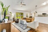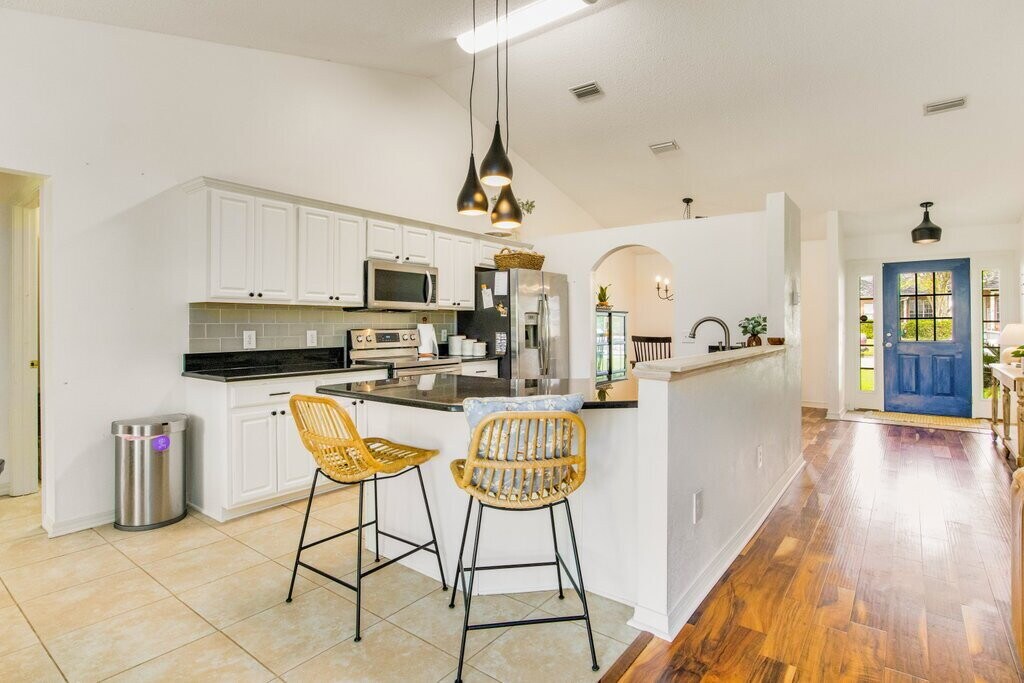 This beautiful home is nestled in the quiet neighborhood of Perdido Bay Country Club. The kitchen is renovated with stainless steel appliances, a backsplash and granite countertops. Hardwood floors in the common areas and tile flooring in other areas. The living room is an inviting place to relax by the propane fireplace. All of the lighting and fixtures have been updated throughout the home along with freshly painted walls and baseboards. The master bathroom has new custom vanities, new fixtures, walk-in shower, jetted bathtub, and large walk-in closet! This house is installed with updated locking Hurricane shutters that are as easy as shutting a curtain!! Enjoy the large backyard with a few citrus trees, herb garden, sago palms and a in-ground sprinkler system that is overlooked by a spacious screened in porch. There is an extended driveway along the side of the house that has RV hook ups. Roof installed in 2018 with hurricane shingles by Tadlock Roofing. New HVAC system installed in 2021. The location of the home is minutes from N.A.S Pensacola, Perdido Key Beach, Downtown Pensacola, and nearby grocery stores. You are just a golf cart ride away from Perdido Bay Country Club, the former site for the Pensacola Open for 10 years, and the course still holds it's integrity! The Club House is a perfect spot for lunch, dinner, or just a cold beverage! Washer and dryer included! Schedule an appointment to see this lovely Florida charmer today and make it yours!