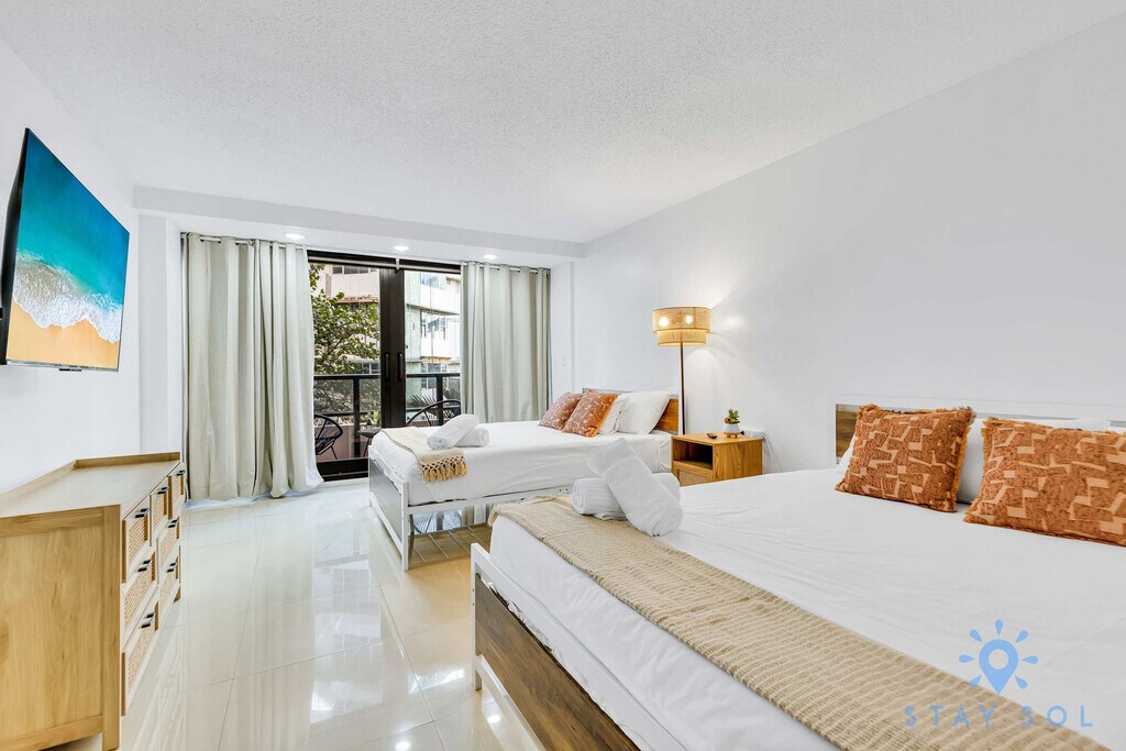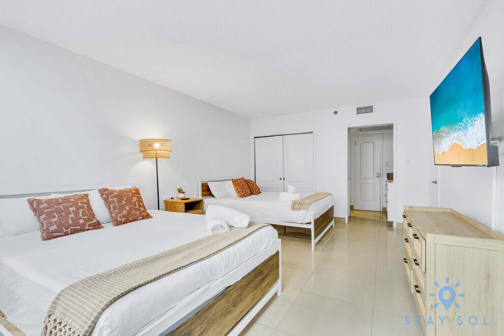 Forget your worries in this modern-style, large apartment in Miami Beach with an ocean view of the crystal-clear water. Feel at home in this 2-bedroom, 2-bathroom apartment. This apartment features a full kitchen, a living area, and a dining area. It is equipped with a TV, refrigerator, coffee maker, toaster, microwave, hob, dishes, and glassware. Enjoy access to a huge swimming pool. Parking is available for an additional cost of $35 per day from Monday to Thursday, $45 per day from Friday to Sunday and on holidays, $175 weekly, and $450 monthly. The washer and dryer are in the corridor. Located on the beach on Collins Avenue in Miami Beach's Mid Beach/Millionaires Row area, this apartment offers oceanfront living and ocean access boating from the Indian Creek docks. The bus station is in front of the building, and Uber and Lyft are readily available. From here, you are 10 minutes by car from South Beach, Lincoln Rd, Ocean Dr, Midtown, and Wynwood. Aventura Mall, Bal Harbour Shops, and Gulfstream Park are 20 to 30 minutes away. Swimming is at your own risk as there is no lifeguard on duty. Children must be supervised by a responsible adult at all times. No diving or running is permitted. The property management is not liable for any accidents, injuries, or losses that may occur while using the pool or surrounding areas. Please keep all doors closed and the air conditioning on at all times to help prevent condensation and property damage. Guests should be aware that there may be increased noise levels from nearby construction during the day. [SI]