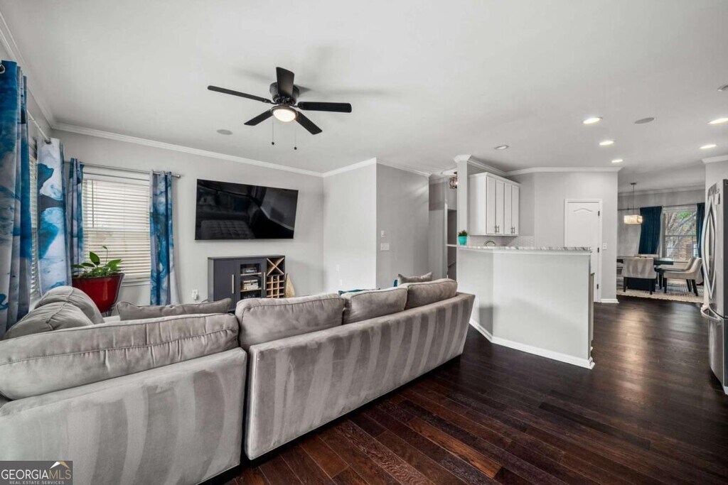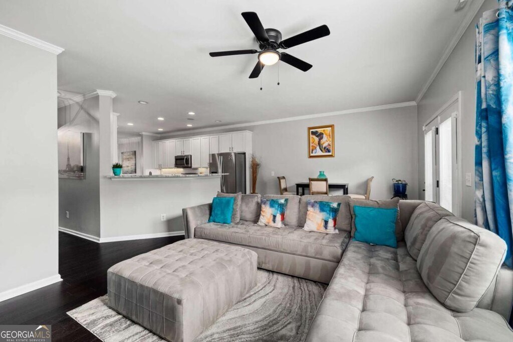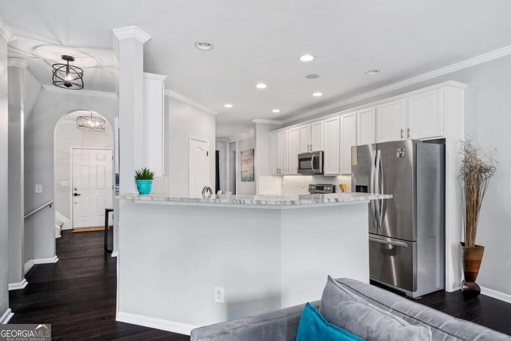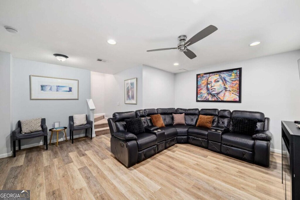 Have you been waiting for a move-in-ready townhome in one of Smyrna’s most convenient locations? Your patience has paid off! Welcome to this end-unit gem in the sought-after White Oak Preserve community - offering space,flexibility,and amenities you’ll love. - A charming front porch with a suspended bench sets the tone before you step inside to find hardwood floors throughout the main level. The large formal dining room flows seamlessly into an updated kitchen featuring white cabinets,white granite countertops,and a stylish backsplash. The spacious family room opens to an entertaining deck that's perfect for grilling,relaxing with friends,or hosting game-day gatherings. - Upstairs,the roommate floor plan offers two oversized bedrooms,each with its own full bath and double sinks. The primary suite includes a garden tub,separate shower,and walk-in closet. A functional loft space adds flexibility for a home office or reading nook. - The finished basement with LVP flooring provides even more possibilities - a third bedroom,media room,or workout space. A two-car garage,abundant storage,and thoughtful updates tie together everything perfectly. - White Oak Preserve includes a pool,walking trail,and guest parking. From here,commuting to Midtown,Buckhead,or the airport is easy,and you’re just minutes from The Battery,local parks,coffee shops,and dining. Opportunities like this don’t last long in Smyrna. Come see it for yourself!