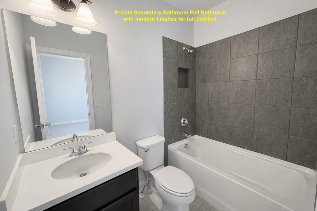 Beautifully maintained 5 bedroom / 4 bathroom home in the Chimney Creek community. This home offers a bright, open layout with a modern kitchen featuring an oversized island, quartz countertops, stainless steel appliances, and ample cabinet space, making it ideal for everyday living and entertaining. The main level includes a full bedroom and bathroom, well suited for guests, multigenerational living, or a dedicated home office. Upstairs, the primary suite is spacious and well maintained, offering tray ceilings, double vanities, a separate tiled shower, soaking tub, and a private water closet. Secondary bedrooms are generously sized with convenient access to full bathrooms and excellent storage throughout the home. Clean sightlines, neutral finishes, and wide plank flooring create a fresh, move-in-ready feel. Additional upgrades include a high-efficiency tankless water heater providing continuous hot water and an EV-ready garage with a dedicated charging outlet, adding both comfort and long-term value. The backyard offers open green space, and residents enjoy access to community amenities including a pool, tennis courts, and walkable sidewalks. Conveniently located near top-rated Forsyth County schools, shopping, dining, and major commuter routes. This is a high-quality home for well-qualified tenants seeking space, comfort, and modern features. Professionally managed by PMI North Atlanta. Minimum 12-month lease required. Homes like this lease quickly.