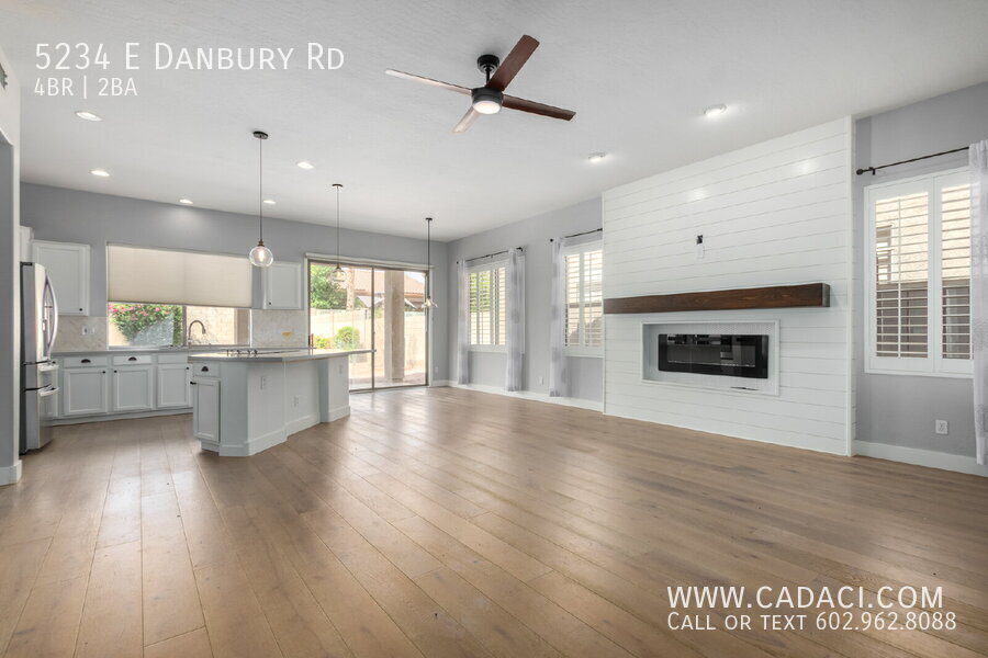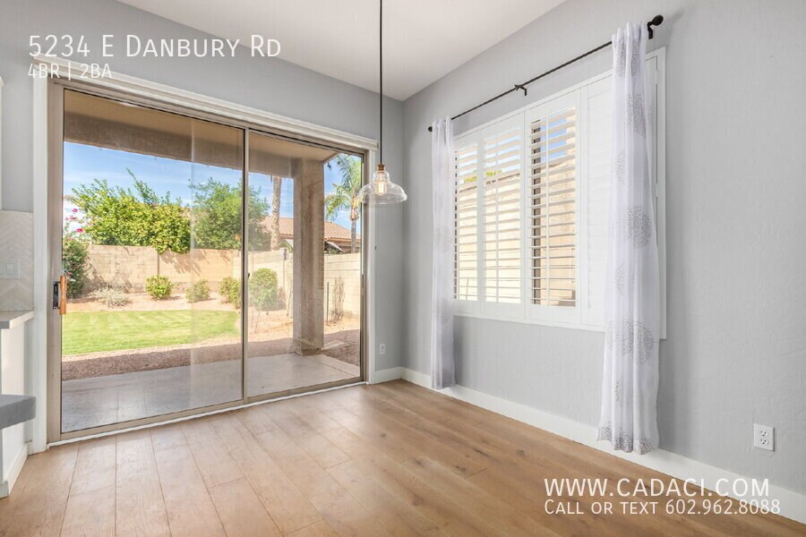 Gorgeous updated 4 bed 2 bath home with pool and 3 car garage in highly desirable Arabian Views neighborhood. For showings, rental qualifications and applications visit Cadaci online. Home features a large formal living room and dining room with bar and wine fridge, could also be used as a game room. The family room has a fireplace and is open to kitchen and kitchen dining areas. You will love the granite slab counter tops, stainless appliances, and upgraded white cabinets. Split floor plan. Super sized primary bathroom with huge walk-in closet. Wood plank flooring in the common areas. Ceiling fans and plantation shutters throughout. Two tone designer interior paint, new carpet. Refrigerator, washer and Dryer included. Large covered patio with huge grassy backyard with fenced pool to one side allowing lots of play area. Pool service included in rent. Refundable deposits: $4500 Security, $300 cleaning, $300 Pet. Non-Refundable Fees: $250 Admin, $50 per person application fee.