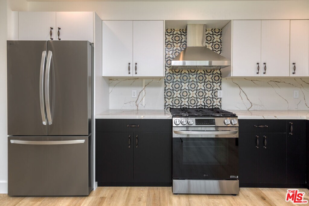 BRAND NEW CONSTRUCTION IN QUIET NEIGHBORHOOD! Note: the unique address for this second floor unit is 5247 1/2. Let us begin with the fact that this 730 sq. ft.(864 incl. beautiful patio) was just constructed. Enjoy being the first to run the high-end appliances. Owners have put much thought into the details, sparing no expense to ensure the interior is well-lit by a skylight and sizable hide-away balcony sliding doors and and hideaway walk-in closet doors. On a beautiful breezy day, the balconies give the tenant the sense that the unit is twice as large. The second floor openness gives it a fancy tree-house feel. Details include masterfully selected and installed tile, stone, and a light plank hardwood throughout as well as the details that draw you back to the 1930's neighborhood this once was. Well selected granite counter tops adorn the open kitchen. Access to the sizable balcony thru the bedroom and/or living room. It's an eye-catcher. MLS# 25575171