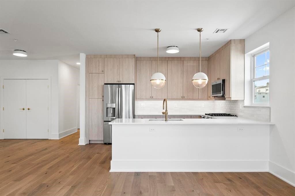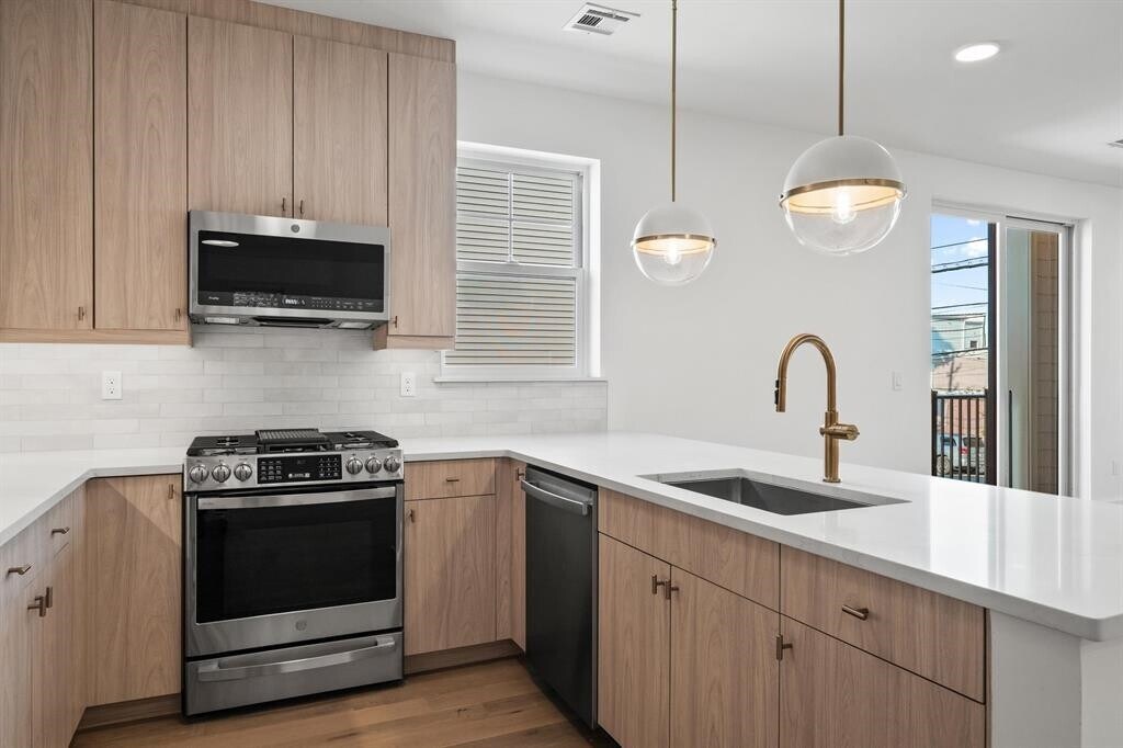 - Additional Property Details- A place you'll be proud to call home! Experience the ease of elevated living in this brand-new, thoughtfully designed unit, where every detail has been curated for comfort and style. This three-bedroom, two-and-a-half-bath unit features an open concept layout filled with natural light, premium finishes, and gleaming floors that reflect timeless elegance. The heart of the unit is the modern kitchen, outfitted with top-tier appliances, a large island, and a seamless flow into spacious living and dining areas. The private balcony extends your living space outdoors—perfect for morning coffee or evening unwinding. The generously sized bedrooms, including a luxurious primary suite with ensuite, offer a peaceful retreat from busy days. Enjoy the convenience of in-unit laundry, parking, and an exclusive rooftop lounge with skyline views. With nearby shopping, dining, the Hudson-Bergen Light Rail, and major commuter routes, this unit is a perfect balance of serenity and accessibility. - 3 - 525 Ave E- $3,9503 Beds, 2.5 Baths, 2066 sq ftAvailable NowLargest 3 BedroomThis is the largest 3 Bedroom at this Property- Availability Details- Price - Availability Date - Unit - Sq Ft - $3,950 - Available Now - 3 - 525 Ave E - 2066 sq ft - Model Amenities and Features- Kitchen- Oven