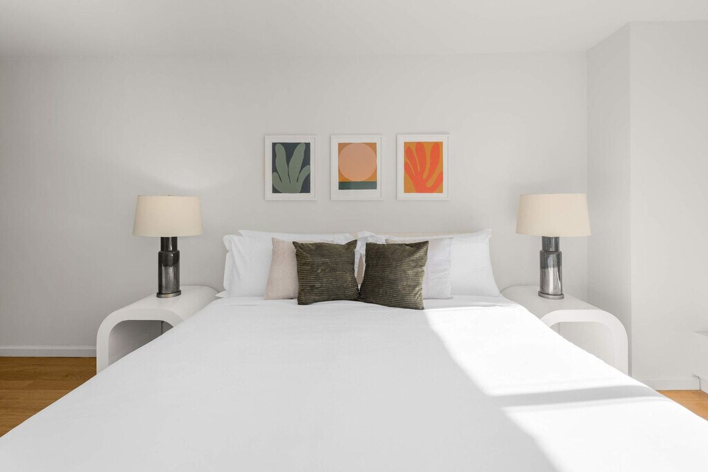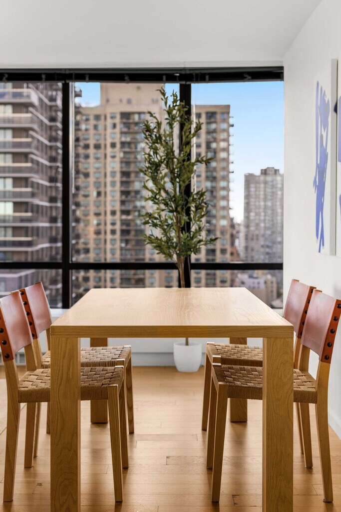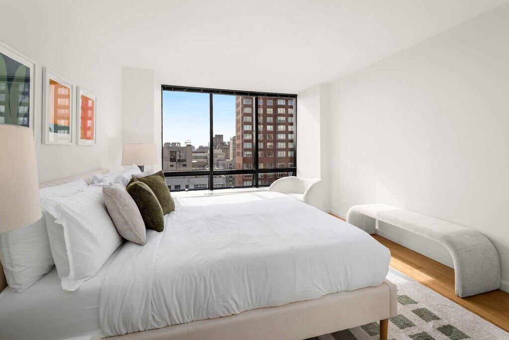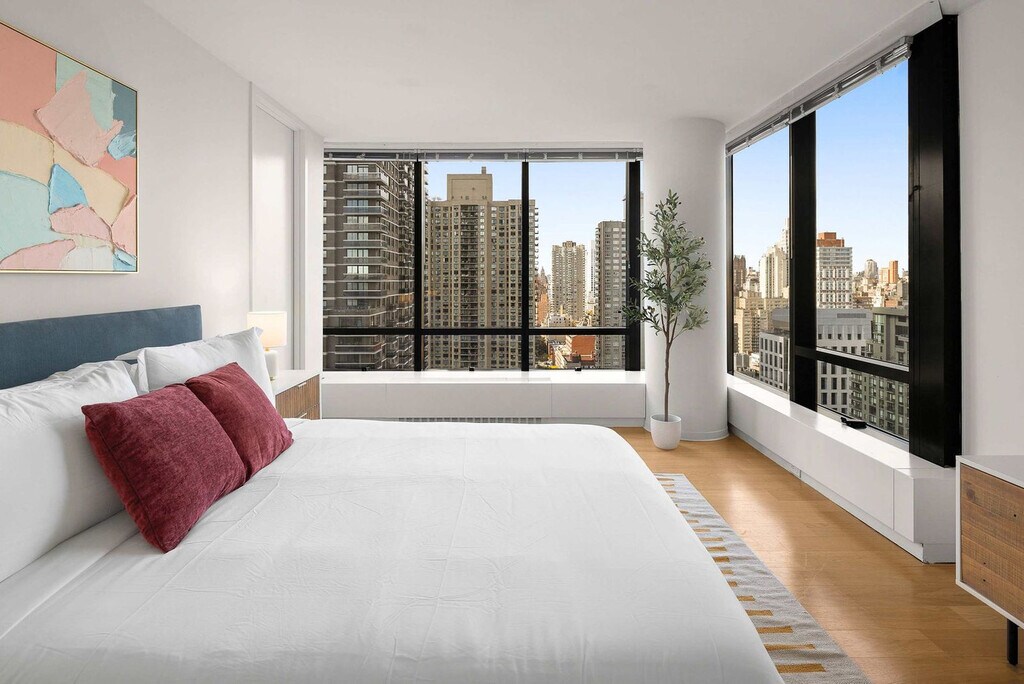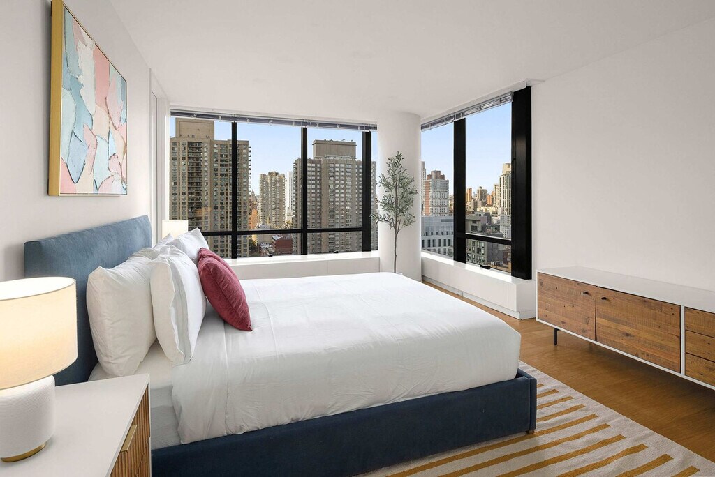 Feel at home in this oversized 2-bedroom, 2-bathroom residence perched 25 floors above Manhattan in the Upper East Side. This corner apartment offers floor-to-ceiling windows and sweeping views of the city. The living area is generously proportioned with separate lounging and dining areas, designer furniture and art, a renovated kitchen, and a custom wood dining table. Complete with a smart TV and blazing-fast Wi-Fi, this apartment also offers connected access to streaming services. Additional highlights include a full-size washer and dryer, hardwood flooring throughout, high-speed internet, and abundant storage. Bedrooms feature hotel-quality linens and mattresses. Residents also enjoy access to a full-sized pool, modern fitness center, resident lounge, and 24-hour concierge service. Situated on 72nd Street, this unit places you in the heart of the Upper East Side, just steps from parks, restaurants, and the East River. Utilities for this unit are included in the listed price (Wi-Fi, electric, heat, etc). Excessive use of A/C (exceeding $250/mo) will be billed back to guests after move-out. Smoking is not allowed on the property. [SI]