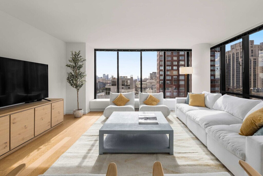 Feel at home in this light-filled 2-bedroom, 2-bath corner residence set on the 17th floor of a full-service luxury building in the heart of the Upper East Side. Enjoy sweeping views of Manhattan through floor-to-ceiling windows. This corner apartment offers an expansive layout with abundant natural light. The living area features spacious, separate lounging and dining areas, complete with oversized furniture from brands including Restoration Hardware and Arhaus, and a designer dining table. The renovated kitchen is perfect for preparing meals. A smart TV and blazing-fast Wi-Fi provide entertainment and connectivity. Additional highlights include a full-size washer and dryer, hardwood flooring throughout, and abundant storage. Access to the 24-hour concierge service is available. Perfectly situated off 72nd Street, this apartment places you in the heart of the Upper East Side, just steps from parks, restaurants, and the East River. Residents also enjoy access to a curated selection of building amenities, including a tranquil indoor pool, a modern fitness center, and a resident lounge. Utilities for this apartment are included in the listed price (Wi-Fi, electric, heat, etc). Excessive use of A/C (exceeding $250/month) will be billed back after move-out. Smoking is not allowed on the property. Includes a workstation in the master bedroom. [SI]