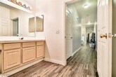 Welcome home to this beautifully upgraded two-bedroom, two-bathroom condo featuring a rare, oversized two car ATTACHED GARAGE with direct access into the home, perfect for privacy and convenience. Enjoy stylish vinyl plank flooring throughout with no carpet, a modern roommate style layout, and a full appliance package ready for move in. Natural light and smart design make this home feel both comfortable and functional. Located inside Spanish Palms, a desirable guard-gated community, residents enjoy resort style amenities including two sparkling pools with relaxing hot tubs, a fully equipped fitness center, and a dedicated pet park. Centrally located just four miles west of the iconic Las Vegas Strip, this home offers easy access to the I-215 Freeway and sits directly across from Spanish Trails, providing the perfect balance of convenience, security, and lifestyle. Don’t miss the opportunity to live where comfort meets location.