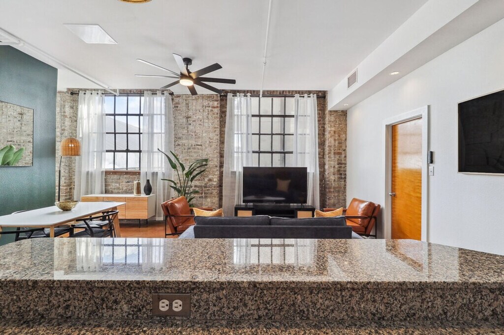 The advertised rate of $8,159/month is the lowest available price, based on a 30 day(s) stay with a move-in date of July 30, 2026. Rates vary depending on the duration of stay, season, and other parameters. For exact pricing and additional pricing components, please visit our website and enter your desired move-in and move-out dates. The rate is applicable when billed upfront; it can be higher if billed in multiple payments. Stay in the heart of New Orleans’ Warehouse District in this spacious 2-bedroom, 2-bathroom loft, perfect for families, groups, or bachelor and bachelorette parties. One bedroom offers a private queen bed and en-suite, ideal for parents or the guest of honor. The second bedroom features queen-sized bunk beds and two twin beds with its own en-suite, making it great for kids or the rest of the group. With a full kitchen and open living area, this home has comfort and style for all. This apartment can sleep six guests, with two in the master bedroom and six in the second bedroom. The bunk beds are queen-size and sleep two guests per bunk. Guests will have full access to the entire apartment, including both bedrooms, bathrooms, the kitchen, dining, and living spaces. The home is private and exclusively yours during your stay. Located in the walkable Warehouse District, this apartment offers easy access to the vibrant culture and attractions of New Orleans. Enjoy the convenience of being close to local dining, entertainment, and shopping options, making your stay both enjoyable and memorable. A laptop computer is not included. Registration Number: 22-CSTR-17714, 22-OSTR-17719 [SI]