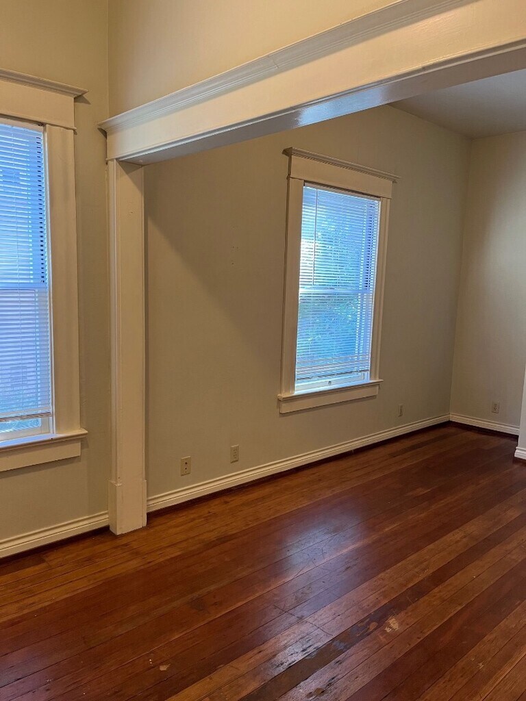 Sought after Middle unit!! Dishwasher, Washer and Dryer, One block from BMU Chico State, Hardwood floors, vaulted ceilings, spacious living room, open kitchen with dining space, large bedrooms with mirrored closet doors, washer and dryer, tiled bathroom with tub shower, limited off-street parking for an additional cost. Lovely Historic Home in an Awesome Location!