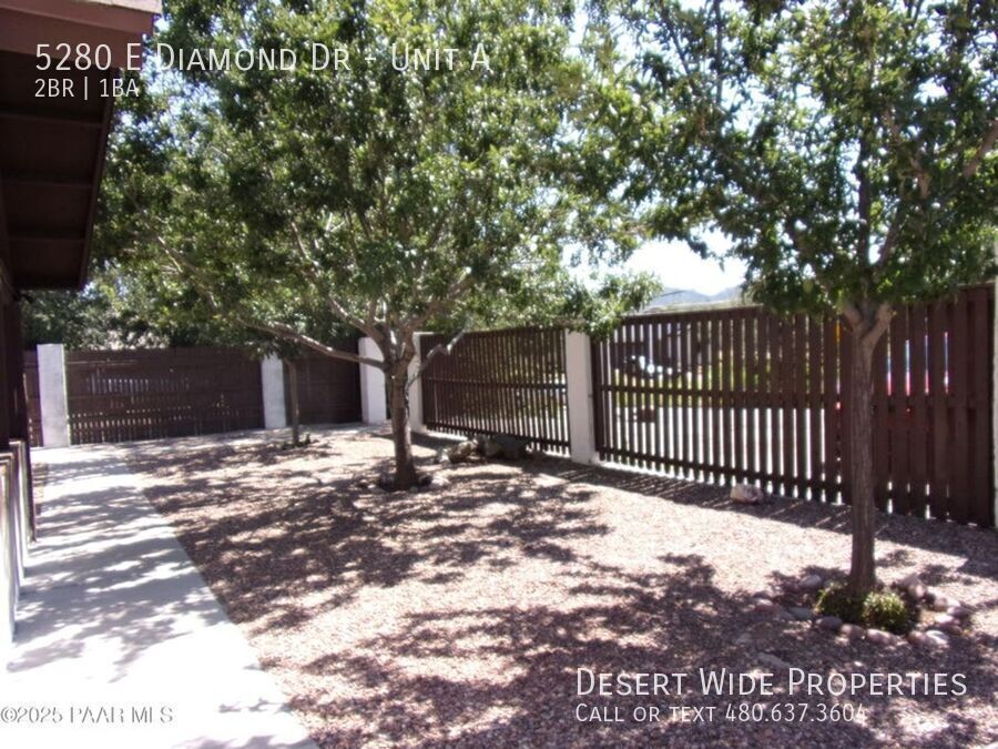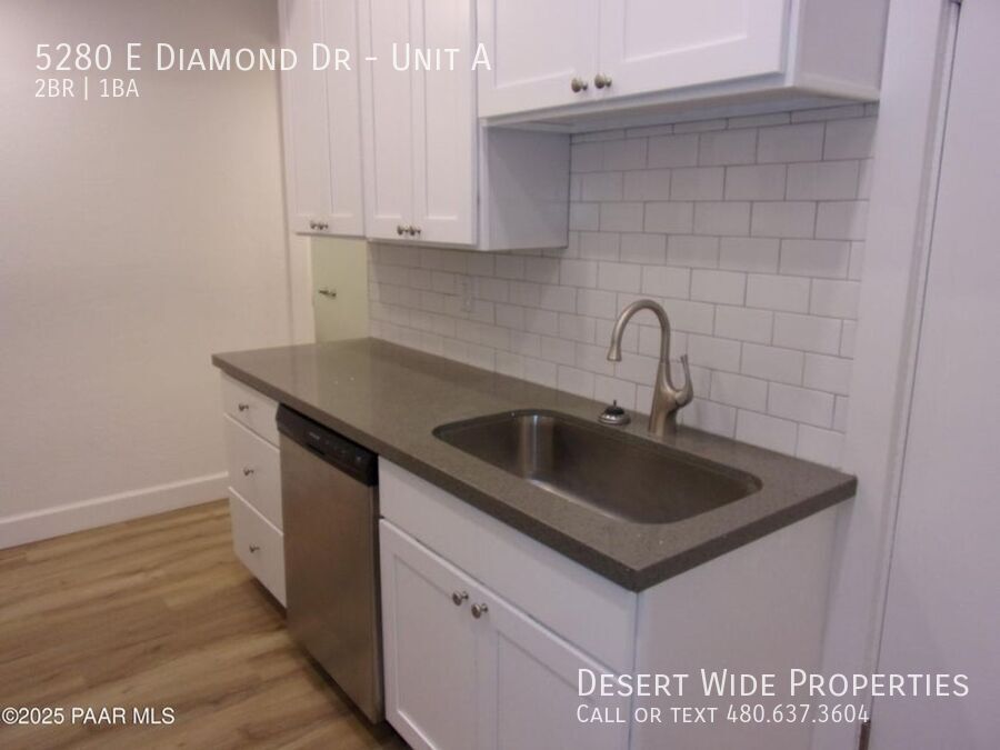 Charming remodeled 2 bed/1 bath unit,ground level with a large front covered patio. Large family room,galley kitchen with refrigerator,stove/oven,dishwasher,& microwave,vinyl wood flooring,and spacious full bath. Common laundry room for all Tenants,parking spaces,Landlord pays water & trash. Located between Prescott & Prescott Valley. Owner may consider 1 small pet.