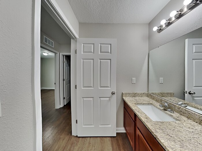 All Bridge Homes listings are pet-friendly and offer easy self-tours -- schedule yours today! Transparent Pricing with Resident Benefits Package included: $1,766 Base Rent plus $29 RBP, Total $1,795. MOVE-IN BY 10/31/2025 & Get 883.00 OFF Rent! This modern 4-bed, 2-bath home in Walkers Ridge offers over 1,400 sq. ft. of single-story living. Enjoy granite countertops, stainless steel appliances, and LVP flooring throughout, no carpet. The open layout is perfect for entertaining, and the kitchen includes a faucet with built-in sprayer. The private primary suite features its own bath, while three additional bedrooms provide space for guests or a home office. Additional highlights include a double-car garage, sprinkler system, fresh interior paint, and front/rear security lights. Conveniently located near First Coast Expressway and minutes from Oakleaf shopping. All Bridge Homes residents are automatically enrolled in our Resident Benefits Package (RBP), designed to enhance your leasing experience. Your advertised rent already includes this $29 monthly package, no hidden fees. RBP delivers valuable services like a personalized utility concierge, air filter delivery, credit building, and resident rewards. Full details available upon request. Equal Housing Opportunity This property allows self guided viewing without an appointment. Contact for details.