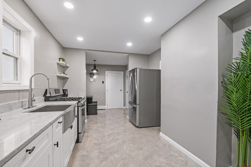 Welcome to this modern retreat, located just 25 minutes from New York City, where you can feel at home. This 3-bedroom home in Bayonne is designed for large groups and offers a blend of luxury finishes with family-friendly touches. This home features a cozy living room with comfortable seating and a flat-screen TV. The fully equipped kitchen is a chef's dream, with stainless steel appliances and granite countertops. Towels, linens, and toiletries are provided. One parking spot is available in the driveway, and street parking is easy and free for additional cars. The cold plunge is available seasonally. Bayonne is a peaceful, family-friendly neighborhood that’s incredibly close to New York City. You’ll find local restaurants, grocery stores, and coffee shops just around the corner. Hudson County Park is nearby. The light rail station is less than thirty seconds away, connecting directly to NYC, Hoboken, and Jersey City. Manhattan is about twenty-five minutes away, and Newark Airport is around fifteen minutes by car. Please be respectful of neighbors and keep noise levels low after 10 PM. A $500 party fee will be assessed for any unauthorized party or event. A $500 smoking fine applies; please avoid smoking in the property. The outdoor space is a shared amenity that may be accessed by guests from both units. Enjoy a beautiful fire pit and kids playground. [SI]