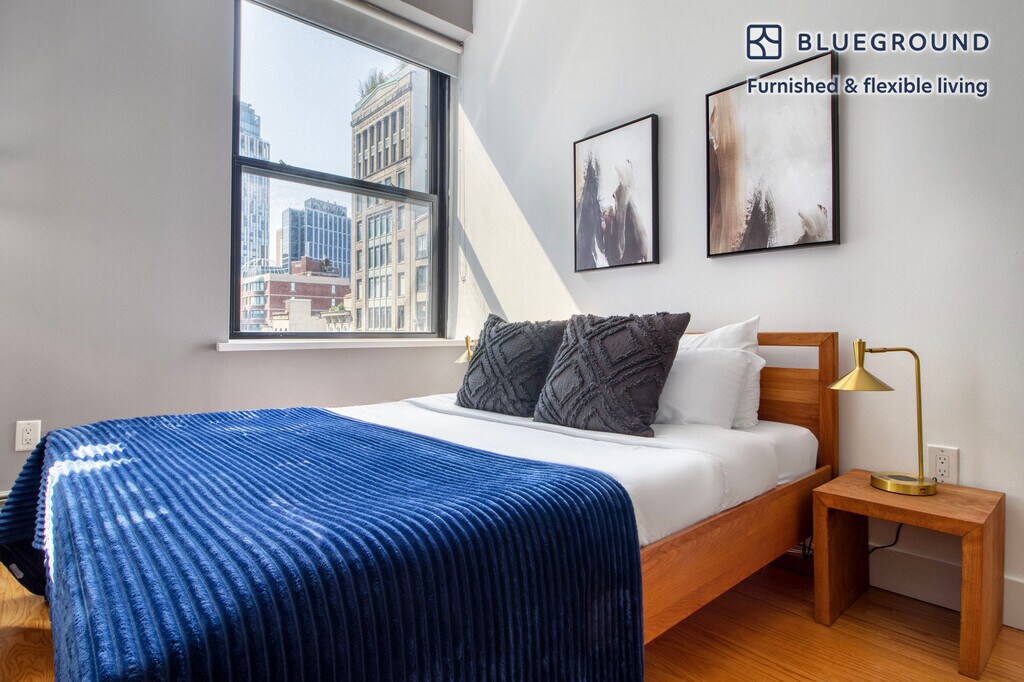 Feel at home wherever you choose to live with Blueground. You’ll love this stylish Tribeca furnished studio apartment with its modern decor, fully equipped kitchen, and lovely living room with great views. Ideally located, you’re close to all the best that New York has to offer! (ID #NYC53) The advertised rate of $4,450/month is the lowest available price, based on a 9 month(s) and 27 day(s) stay with a move-in date of August 9, 2026. Rates vary depending on the duration of stay, season, and other parameters. For exact pricing and additional pricing components, please visit our website and enter your desired move-in and move-out dates. The rate is applicable when billed upfront; it can be higher if billed in multiple payments. Brokers are welcome to reach out. Were you looking for an unfurnished lease? Try Blueground instead and upgrade from unfurnished to furnished living: - Furnished at rates comparable to unfurnished - No setup or furniture costs - save thousands - Move-in ready - save time, just bring your suitcase Designed with you in mind Thoughtfully designed with bespoke finishes, modern furnishings, and a fully equipped kitchen, you’ll enjoy that “I’m home” feeling with this Blueground apartment. Whether you’re lounging in your stylish living room streaming the latest and greatest entertainment on the smart TV or premium wireless speaker, or getting some well-earned rest on the superior quality mattress with luxury linens, you’ll fall in love with everything this Tribeca apartment has to offer. This apartment also offers in-floor laundry. Sleeping arrangements Queen Bed, 63in/160cm Amenities Building amenities unique to this studio apartment include an on-site: - Basketball Court - Doorman - Dryer of floor - Elevator - Game room - Washing machine on floor - Lounge - Pets allowed - Playroom Arrival and ongoing support The entire apartment is yours to enjoy! Throughout your stay, you’ll have access to our Client Experience team through the Blueground App. You can schedule additional cleanings, submit maintenance requests, and view our neighborhood recommendations with just a few taps. We’ll share all details upon confirmation of your stay. Ideally Located This furnished apartment is in the vibrant neighborhood of Tribeca. Formerly an industrial center, nowadays it is considered an artists' mecca, and one of the most exclusive neighborhoods in the city. The award-winning public and private schools draw families to nest nearby. Locals can be seen strolling along the Hudson River or dining at a wine bar. Quaint cafes and inviting green park space make this a great place to call home. Tribeca is one of the more well-rounded and well-connected neighborhoods in Lower Manhattan. By subway, the Financial District is only 10 minutes away. Other things to note Building amenities may have an extra cost. This Blueground apartment has flexible lease options, allowing you to book it for one month, a year, or more. Pets are welcome, though weight limits and breed restrictions apply and may incur fees. Brokes CYOF. We take great pride in ensuring every photo displayed is shot in our own units with our actual furnishings. That said, we regularly refresh our decor and furniture arrangement, which may differ from what’s pictured. [SI]