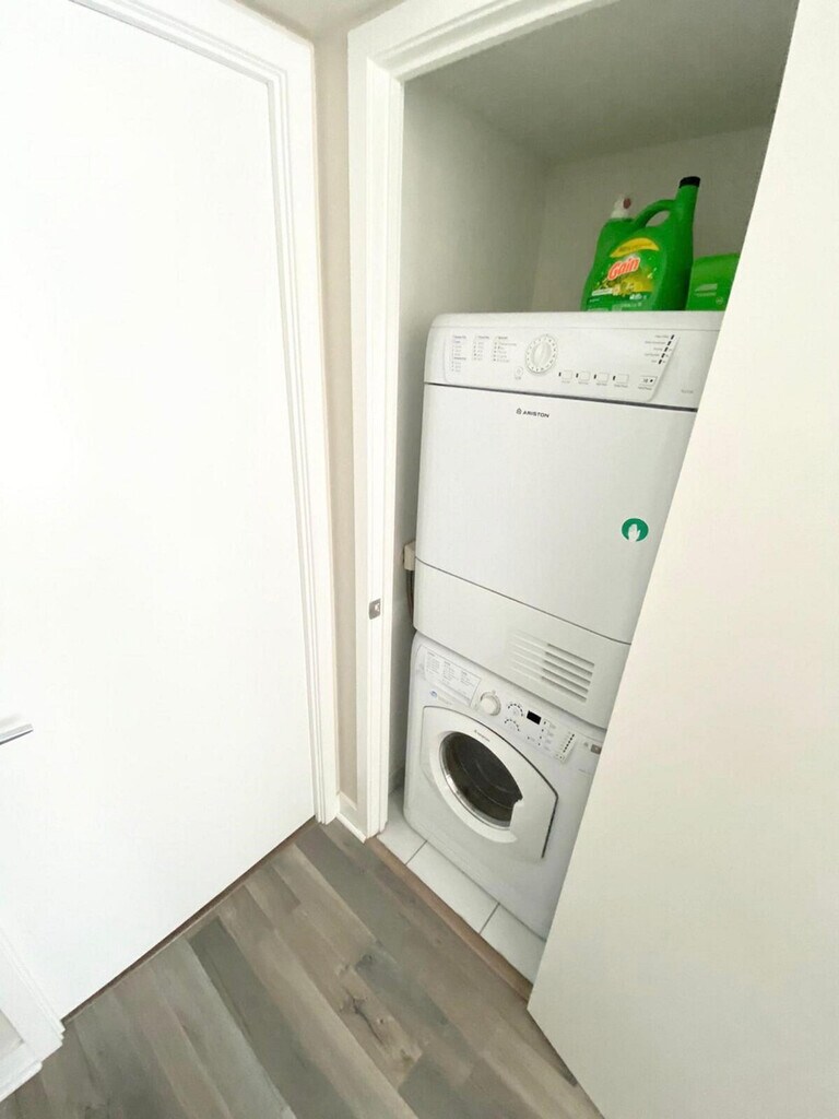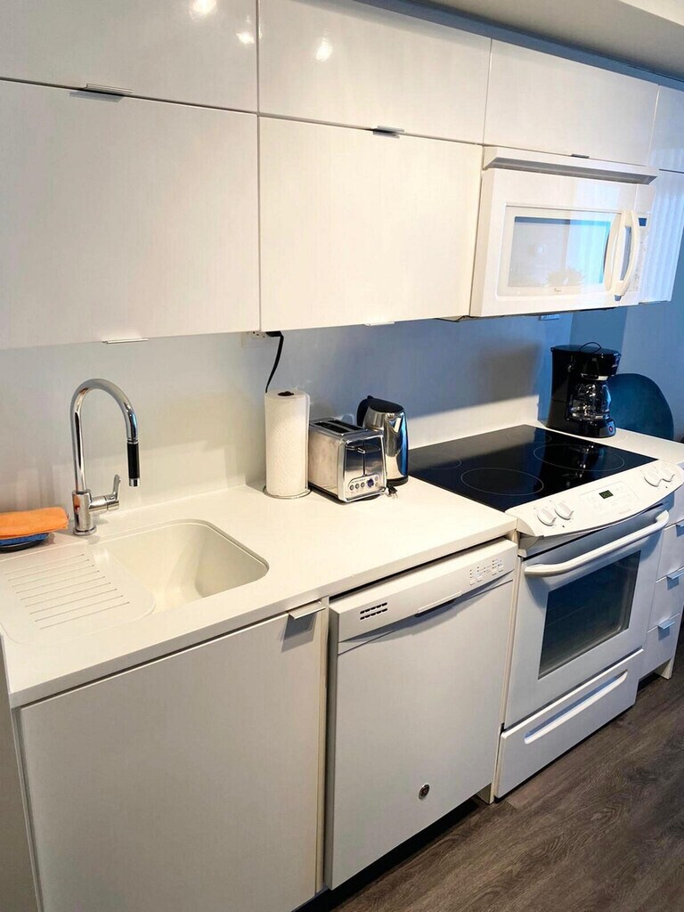 Feel at home in this cozy apartment, located on a high floor in the heart of the downtown entertainment district. This 650 sq. ft. apartment includes a master bedroom. This comfortable suite has everything you need to feel right at home, including a fully functional kitchen with tea, coffee, a kettle, a coffeemaker, and a toaster. A washer and dryer with supplies are available for your convenience. The bathroom is equipped with towels, shampoo, conditioner, body wash, a hair dryer, and other toiletries. Paid underground parking with in/out privileges is available upon request for $20 per night ($10 CAD if you book parking for 28 nights or more). A travel crib (for babies 0-18 months) and bed rails are available for $5 per item per night. Pets are allowed for a fee of $10 per pet per night. Please confirm availability for pets, parking, and baby items prior to booking. Enjoy easy access to the TTC, Union Station, Lake Shore, and Gardiner Expressway. The apartment is steps away from the CN Tower, Rogers Centre, Union Metro Station, Financial District, bars, restaurants, and Sobeys Grocery Store, and Bishop airport. According to the condo rules, information about all guests must be provided to the condo management prior to arrival, including names, ID details, vehicle and license plate numbers (if parking is required). Guests whose names or ID do not match the information given are not allowed into the building. Guests need to be 18 or over in order to check in. [SI]