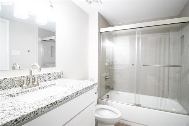 This unit has been COMPLETELY GUTTED AND REBUILT. Every surface, floor, appliance, bathroom etc. is brand new. You will be the first resident to occupy this beautifully remodeled home. Enjoy the beauty and practicality of LVP flooring, granite counters, tiled bathrooms with sliding shower doors. The primary suite has two large separate walk in closets . The secondary bedroom also has a large walk in closet. Spacious living area has a wood burning fireplace and access to your private patio, perfect for unwinding at the end of a busy day. Property is gated secured and has a private underground parking garage. EXECELLENT North Dallas location just 2 minutes to North Dallas Tollway and directly adjacent to Addison. Restaurants and shopping is just minutes away. Come see this one TODAY as it won't last long.