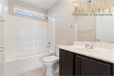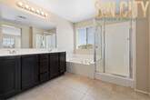 Modern move in ready home located in a gated community with access to a community pool and a park right next door. Low-maintenance desert landscaping in the front yard and synthetic grass in the backyard. Tile flooring throughout the great room and kitchen. One bedroom and bath conveniently located on the main level. The kitchen features granite countertops, a reverse osmosis filtration system, stainless steel sink, refrigerator, microwave, and pantry. The primary suite includes dual vanity sinks, a separate soaking tub and shower, and a walk-in closet. Ceiling fans throughout. Laundry room located upstairs. All Sin City Real Estate and Management LLC residents are enrolled in the Resident Benefits Package (RBP) for $45.00/month which includes liability insurance, credit building to help boost the resident’s credit score with timely rent payments, HVAC air filter delivery (for applicable properties), and much more! More details upon application * optional First Months rent Security Deposit $175 Lease Prep Fee $45 Resident Benefit Package *optional Sin City Real Estate and Management LLC Alexis Quintanilla B.1003001.LLCPrivate Backyard