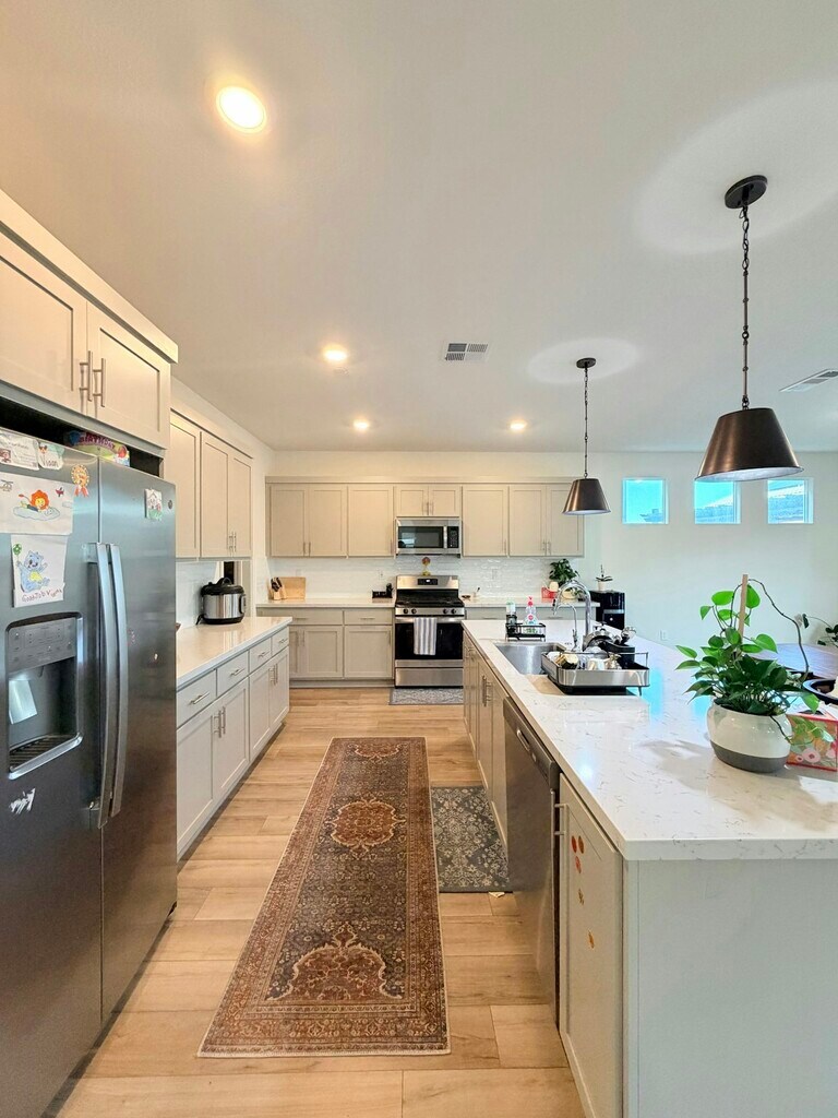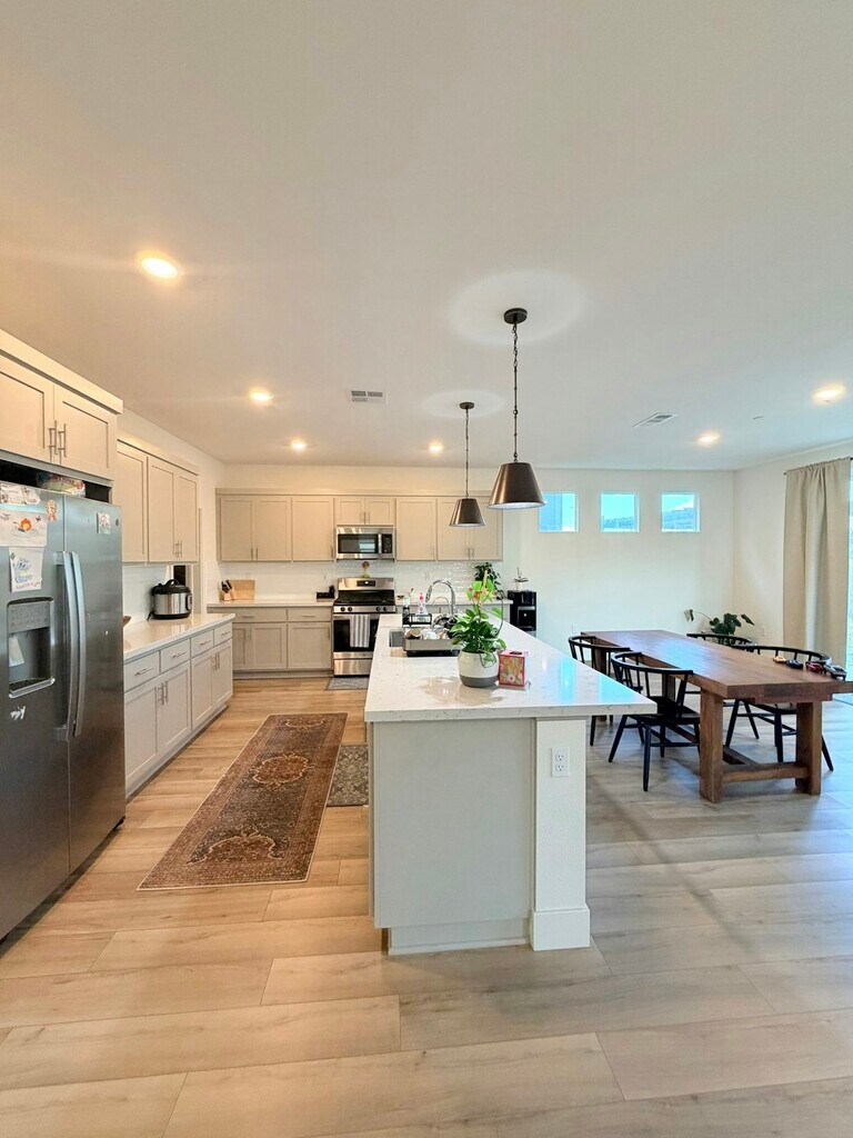 Welcome to 5329 Frisanco Way, a beautifully newly constructed home less than 4 years old, located in one of Antioch’s most desirable newer communities, Aviano. This modern home offers an excellent floor plan with over 3,000 square feet of living space, featuring 3 bedrooms, a den, a loft, 3 bathrooms, and a 3-car garage. The first floor includes a convenient half bathroom, a spacious open-concept living room, and a well-appointed kitchen featuring ample cabinet space, a large island, stainless steel appliances, a pantry, and a separate dining area. The second floor offers a large primary suite with separate vanities, a walk-in closet, a spa tub, and a separate shower. Also upstairs is a den that can be used as a 4th bedroom or home office, a loft ideal for a second living area or kids’ playroom, a washer and dryer room with linen storage, two generously sized secondary bedrooms, and a full hallway bathroom. The backyard is low maintenance, designed with a combination of cement and artificial grass. Additional features include a water softener and solar panels, perfect for electric savings. Tenant is responsible for all utilities and renter’s insurance. Minimum income requirement is 3x the monthly rent with a minimum 650 credit score. Please note the earliest move-in date is June 6. For questions, applications, or showings, please contact Steve.