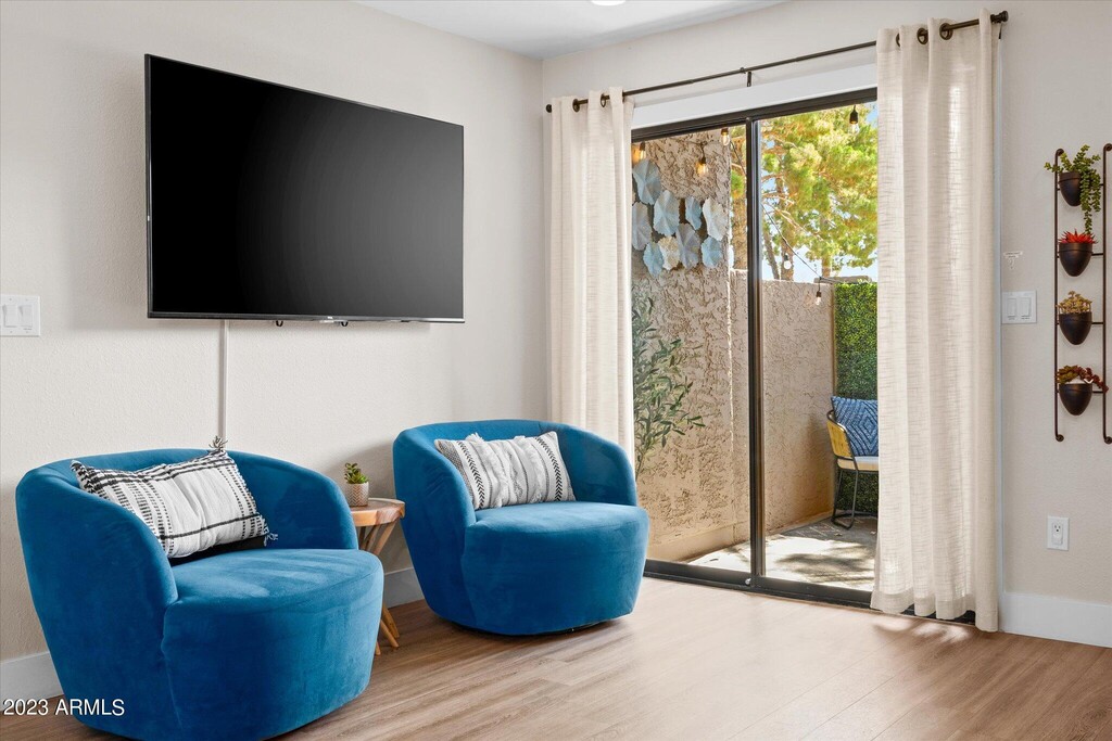 1063 At Mesa: Updated Style,Expansive Comfort,Endless Possibilities for your furnished short or long-term stay! * 3D Tour * Pet Friendly * 1 Gigabit Internet * Utilities Included * Sleeps 4 * Beautifully remodeled spaces provide a well-stocked kitchen,icemaker and RO filter,4K Roku TVs in living room & every bdrm,inside laundry,and cozy private patio,and for longer stays,plenty of clothes storage is provided - Too many amenities to list! Plus 2 assigned parking spaces,2 community pools with hot tubs. Located where Mesa,Chandler,& Gilbert all meet w/ easy access to Scottsdale & Tempe,Loop-101 & US-60,you'll have convenient access to the best these East Valley cities have to offer! Rent = $2500-$3500/mo depending on month and length of lease. Located close to the Loop 101 (Price Fwy) and the U.S. Route 60,1063 At Mesa is close to everything: 13.0 miles to Phoenix Sky Harbor International Airport (almost all freeway) 22.0 miles to Phoenix-Mesa Gateway Airport (also almost all freeway) *ride-sharing (Uber/Lyft) available at both airports* 3.9 miles to Downtown Gilbert (restaurants,shopping,events and more) 4.6 miles to Downtown Chandler (restaurants,shopping,events and more) 5.0 miles to ASU Research Park and Discovery Business Campus 5.9 miles to Tempe's Kiwanis Park (lake,boats,urban fishing,picnicking,and more) 7.4 miles to Chandler Fashion Center (restaurants and shopping) 7.9 miles to Cubs Spring Training (Sloan Park) 8.0 miles to South Mountain Pima Canyon Trailhead (hiking and picnicking) 8.2 miles to Tempe Marketplace (restaurants and shopping,events) 9.9 miles to Arizona State University 13 miles to Phoenix Zoo,Desert Botanical Gardens and Papago Park (urban hiking and city views) 14 miles to Old Town Scottsdale (restaurants,shopping,events and more) 20 miles to Usery Mountain Regional Park 23 miles to Lost Dutchman State Park There are 4 beds in the 2 bedrooms. See below for more room-by-room details! Primary Bedroom: -King bed -En-suite bathroom with walk-in shower -50" 4k TV with Roku for guest account access (no cable) -Walk-in closet with hangers,shelf and basket storage *Find travel crib,sheet,gate,iron,ironing board and extra towels / pet towels here *Find hand-weights,yoga mat and more here Second Bedroom: -Full-sized bed -43" 4k TV with Roku for guest account access (no cable) -Desk with chair -Reach in closet with shelves and baskets for storage and extra blankets Bathrooms: -Shampoo,conditioner,body wash,hand soap,towel sets,Make-Up cloth and towelettes,hairdryers,body lotion,emergency toothbrushes,toilet paper Kitchen: -RO water dispensed at sink (no need for bottled water) -Full-sized appliances including dishwasher -Toaster,blender,colander,cutting boards,cocktail utensils,variety of wine and cocktail glasses (all pool safe),crockpot,baking sheet,baking dishes,skillets,pots,mixing bowls,dishes for kids,and more -10-cup coffee maker,French press,tea kettle,Chemex,regular and decaf coffee,tea bags,half-and-half,sugar and stevia packets,coffee filters -Liquid dish soap,dishwasher soap,paper towels,sponge,trash bags -You'll find the Amenities cabinet here. Inside,you'll find a small tool box and first aid kit,games,booster seat,water bowl,brush and more *3 Fire extinguisher: 2 under the sink and another outside the front door* Living Room: -55" 4k TV with Roku for guest account access (no cable) -Pet blankets are found in the basket tucked away in the corner Laundry area: -Laundry soap,dryer sheets,and dryer balls provided