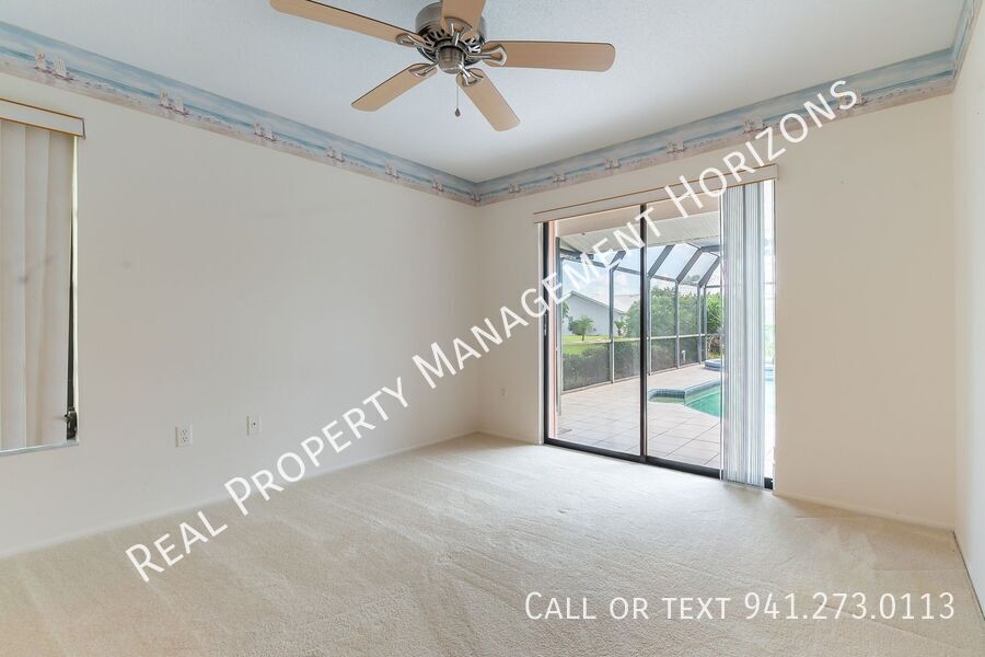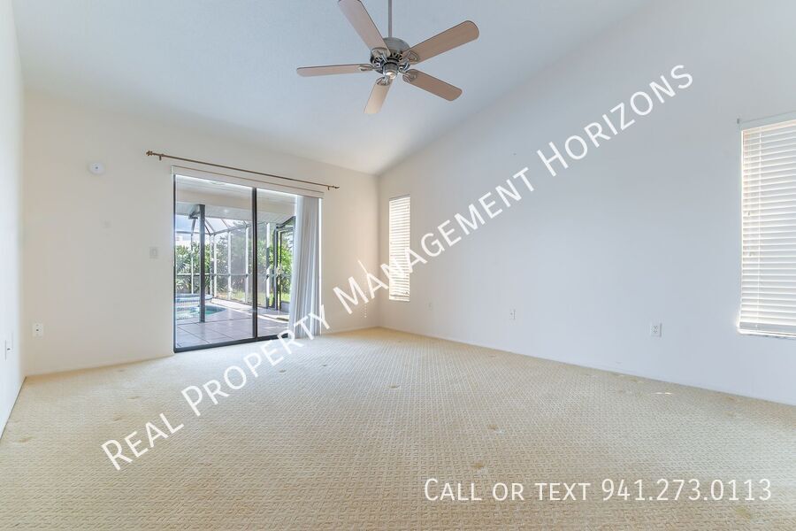 Real Property Management Horizons are delighted to offer for rent this extraordinary 3-bedroom, 3-reception room, 2-bathroom single-family home nestled in the exclusive golf community of Plantation Lakes, in the heart of Venice. While a touch dated, this extremely spacious gem offers an immersive living experience garnished with timeless appeal and distinctive charm. Sprawling over 2,574sq ft, this home has space for everything, a 722sq ft family room can be utilised in any number of different ways and there is also a separate living room, dining room, breakfast nook and welcome foyer. This sits in the hear of the property with easy access to all rooms. The master bedroom, with an incredible en-suite, is set apart from the guest bedrooms offering privacy and has access to the pool area. There is also access to the lanai deck from bedroom 2, the guest bathroom, the kitchen and the dining room, making this a perfect house for entertaining and relaxing. The expansive living spaces present a harmonious blend of natural light and airflow, fostering a serene and invigorating ambiance. The unique and priceless architecture, combined with the captivating scenery surrounding the property, creates an exclusive haven. Steps away from local amenities and hotspots, this majestic abode offers you a lifestyle endowed with convenience and tranquillity and when combined with the highly rated local schools in the neighbourhood, it also makes it an ideal nesting ground for families. Access to Plantation Lakes Country Club would rely on membership which would come at an extra cost. Memberships tiers include: Full Membership (includes golf), Sports/Fitness Membership & Dining Membership. Details on request. An internal inspection of this residence is highly recommended to fully appreciate the accommodation on offer. The property comes unfurnished. Available Oct 17th for a minimum 12 month lease. Tenants will be liable for a Set-Up Fee of $200.00 in addition to the Application Fees Double Garage With Driveway Parking For 2 Cars Exterior Pest Control Lanai Accessible From Four Rooms Pets Allowed Spacious Private Lanai Swimming Pool & Spa Three Double Bedrooms Three Reception Rooms Wet Bar