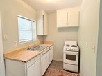 View in 3D: This 2-bedroom, 1-bath duplex offers comfortable living with included conveniences—owner pays water, sewer, trash, and lawn care. The kitchen is well-equipped with a pantry, double-basin sink, range, and refrigerator. The bathroom features a tub/shower combo and a single standing sink. With its simple, functional layout, this home is a great choice for easy, low-maintenance living.