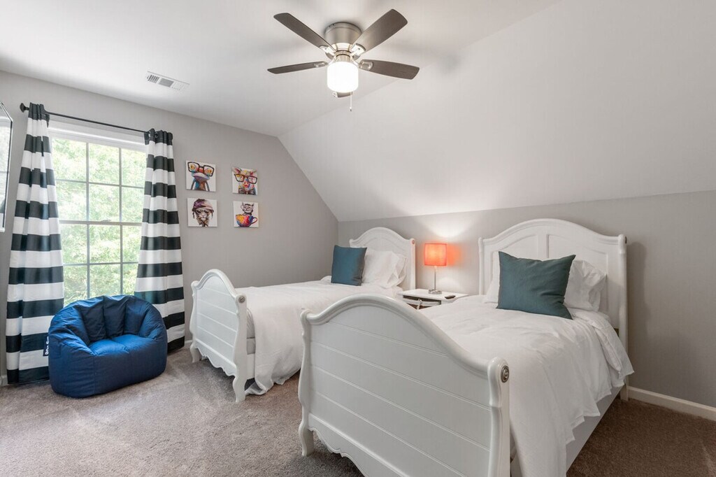 Welcome to your home away from home! This updated multi-level 5-bedroom, 3-bath home is perfect for families, groups, or extended stays. Located just minutes from Downtown Cartersville, I-75, LakePoint Sports Complex, and Truist Park, you’ll enjoy peaceful surroundings with fast access to everywhere you need to be. This home features a main-level king-size master suite with a private en suite and walk-in shower. Upstairs, you'll find three guest bedrooms with a shared bathroom. The private basement suite includes an extra bedroom and full bathroom. Enjoy smart TVs in every bedroom with free streaming apps, blackout shades, and hotel-quality linens for restful sleep. A full-size washer and dryer are available in the basement laundry area. The fully equipped kitchen includes stainless steel appliances, cookware, kitchen essentials, and a Keurig coffee maker with K-Cups. A welcome tray with snacks is also provided. Pets are welcome with applicable fees. High-speed Wi-Fi, utilities, lawn care, and pest control are all included. Enjoy 10% off weekly stays and 15% off monthly stays. Enjoy deck seating and a propane grill for relaxing evenings. There is a 2-car garage and driveway parking. The home is set in a quiet, wooded setting for extra peace and privacy. Smoking and events are not permitted. Pets are considered and require approval before check-in. Please reach out directly to discuss your pet's stay. Upon approval, the fee is collected. For 29 or more nights, the fee is $10 per pet, per night. For 7-28 nights, the fee is $15 per pet, per night. For 1-6 nights, the fee is $25 per pet, per night. [SI]