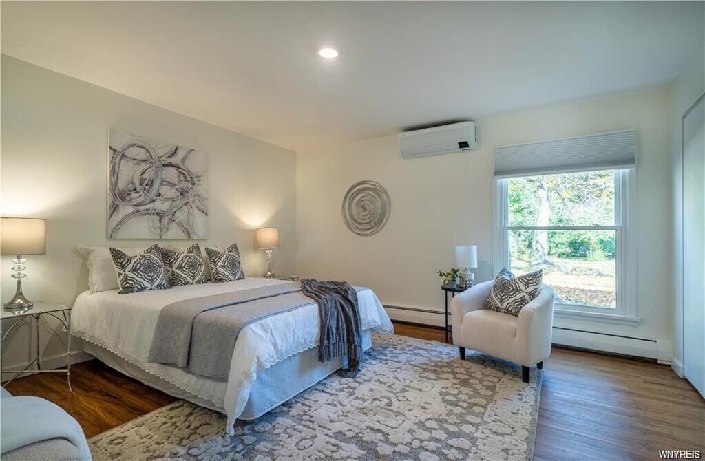 Carefree city living at 538 Linwood! These fully renovated luxury units were redone top to bottom with a modern, minimalist design. Features include quartz countertops, open-concept island, shaker cabinets with tile backsplash, luxury vinyl oak floors, and a fresh bathroom with ceramic surround. Enjoy brand-new stainless appliances, in-unit washer/dryer combo, and split system AC/heat with temp controls. Each unit has two spacious bedrooms (fits a king + queen) with oversized closets, new windows, and window treatments. 1 dedicated off-street parking spot and gas included (tenant pays only electric + internet). Close to Elmwood Village, Delaware Park, Hoyt Lake, and the 33. Upper unit available 2/1/26!
